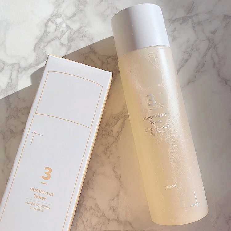 「ナンバーズイン 3番 うるツヤ発酵トナー」を使ってみました。表面と裏面が白色で、側面が鮮やかな黄色のパッケージでした。表面にトナーの絵が描かれているのが印象的でした。開けてみると、表面に描かれた形のトナーが出てきました。透明な黄色のボトルで...