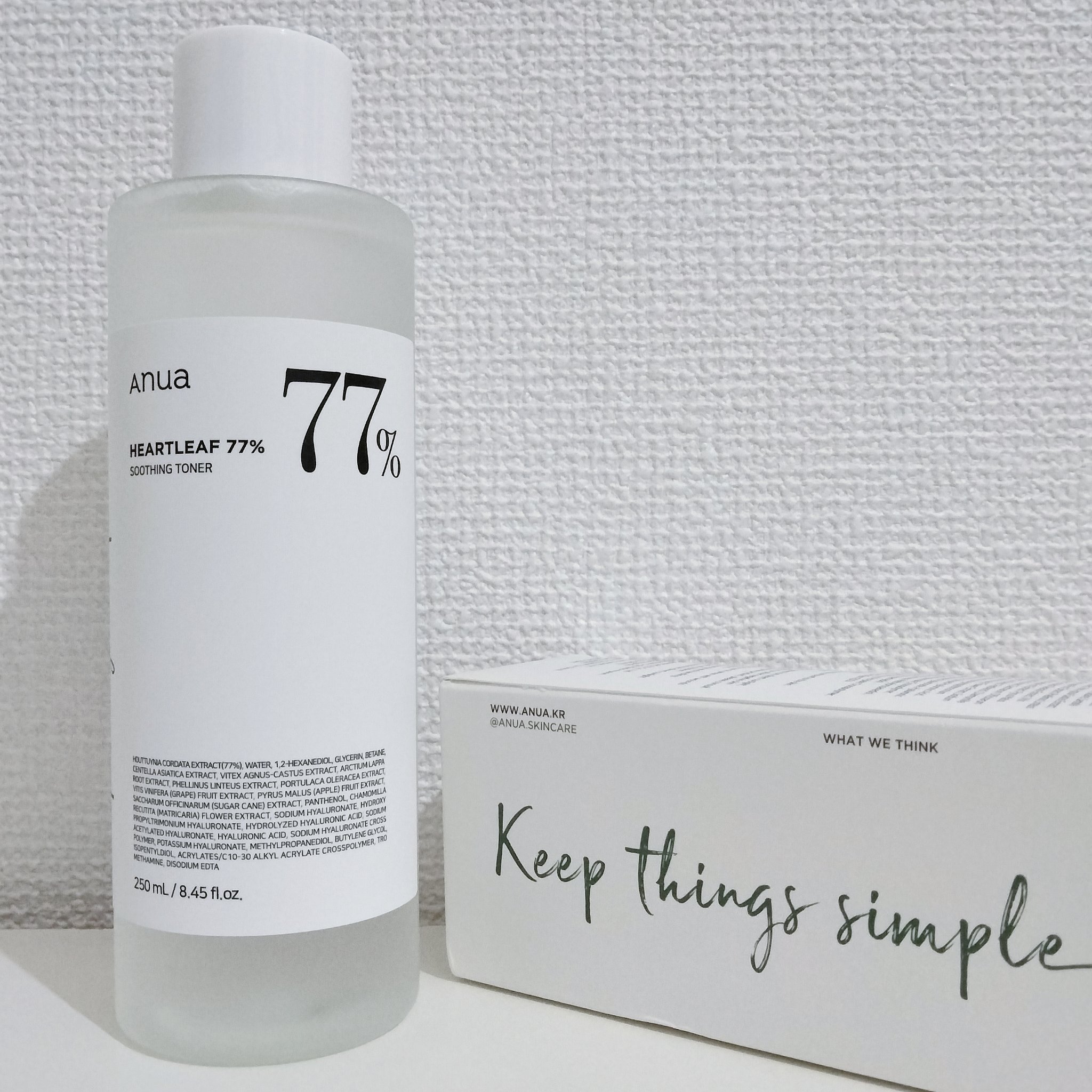 ドクダミエキス※77%も配合したトナー🌈 肌に負担をかけないシンプルな成分で肌にやさしいPH5.5〜6の弱酸性化粧水がPHバランスを整えて健やかな肌に導きます🥀 透明でパシャパシャっと使えるサラッとしたテクスチャー🥰