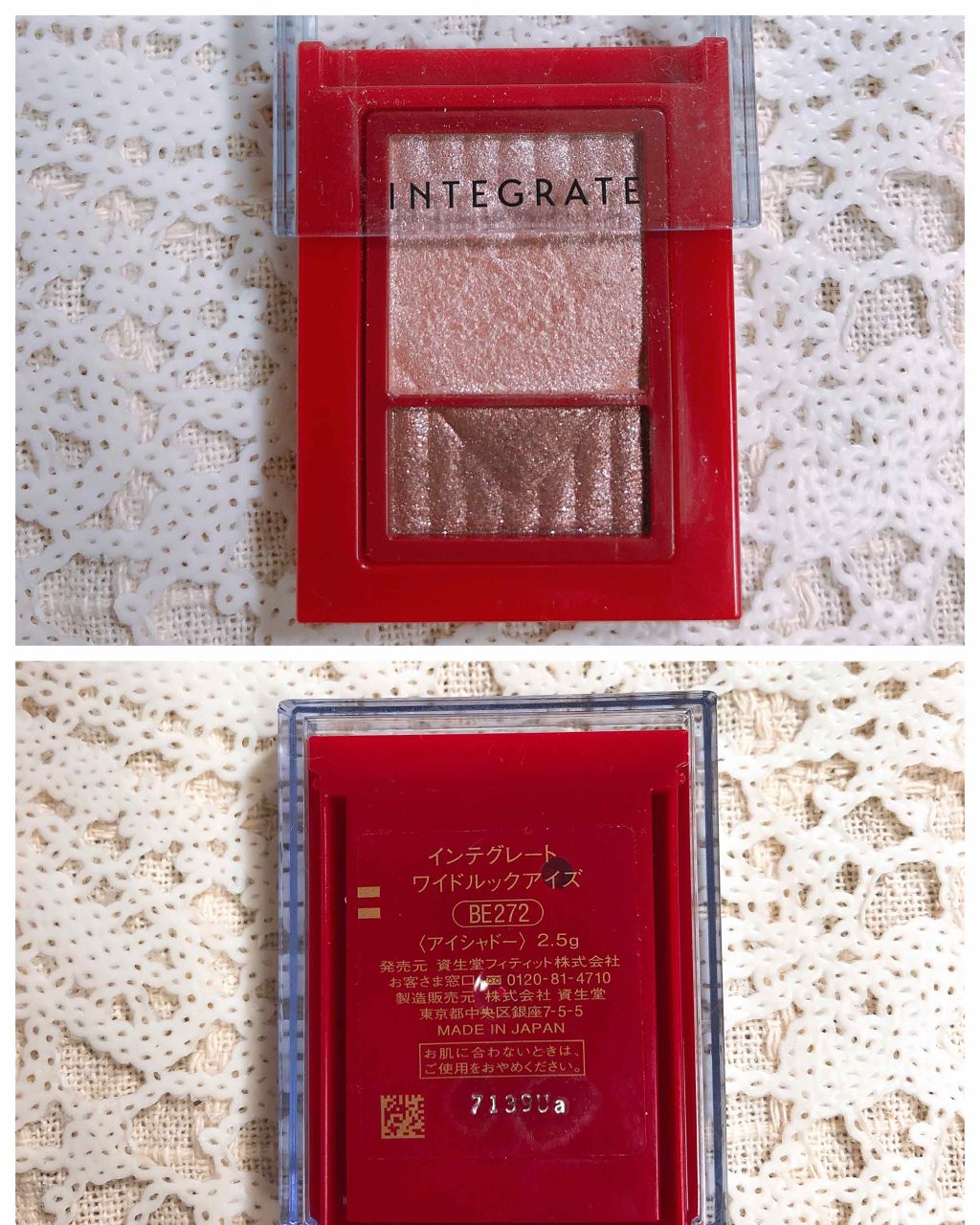 \インテグレートワイドルックアイズ/スライド式の可愛いアイシャドウ♡BR271WT974BE272ベージュとブラウン使いやすいベージュカラーPK373ピンクとバーガンディ女性らしいピンクハートの刻印はかわいすぎ❤️粉とびすごいけどラメが可愛い...
