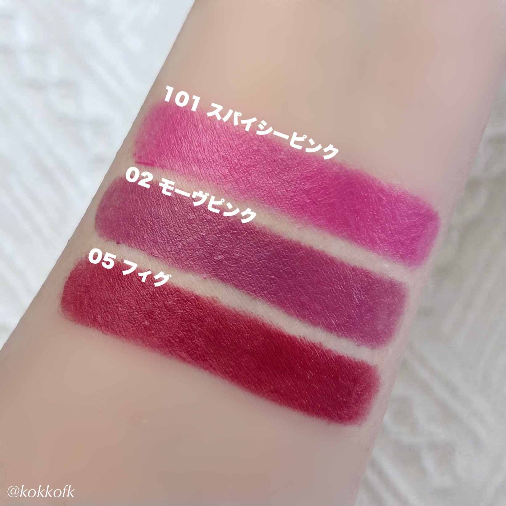 薄く唇に密着する新作マットティント。 マットなのにかなりしっとりとしていて 乾燥を感じなくてびっくりでした! 一気にこなれ感が出るトレンドカラーです♡ やや青みの華やかローズレッド 公式画像より鮮やかめに感じました。 やや黄みの強くて深いオレンジレッド ストロングオータムに超激推しです! やや黄みの非常に深く濃いダークブラウン ディープオータムに激推しです! かわいい雰囲気になれるピンクリップです♡ やや青みの柔らかいくすみピンクベージュ ミューテッドサマーにおすすめです! 青みの落ち着いたローズピンク やや青みのとても鮮やかなビビッドレッド ビビッドウィンターに特におすすめ! 既存マットティントよりもさらに ふわふわなマット感が魅力のリップで、 軽くティッシュオフしてもほとんど落ちない◎ マスクにも激推しのティントなので、 ぜひ皆さんもチェックしてみてね❤︎