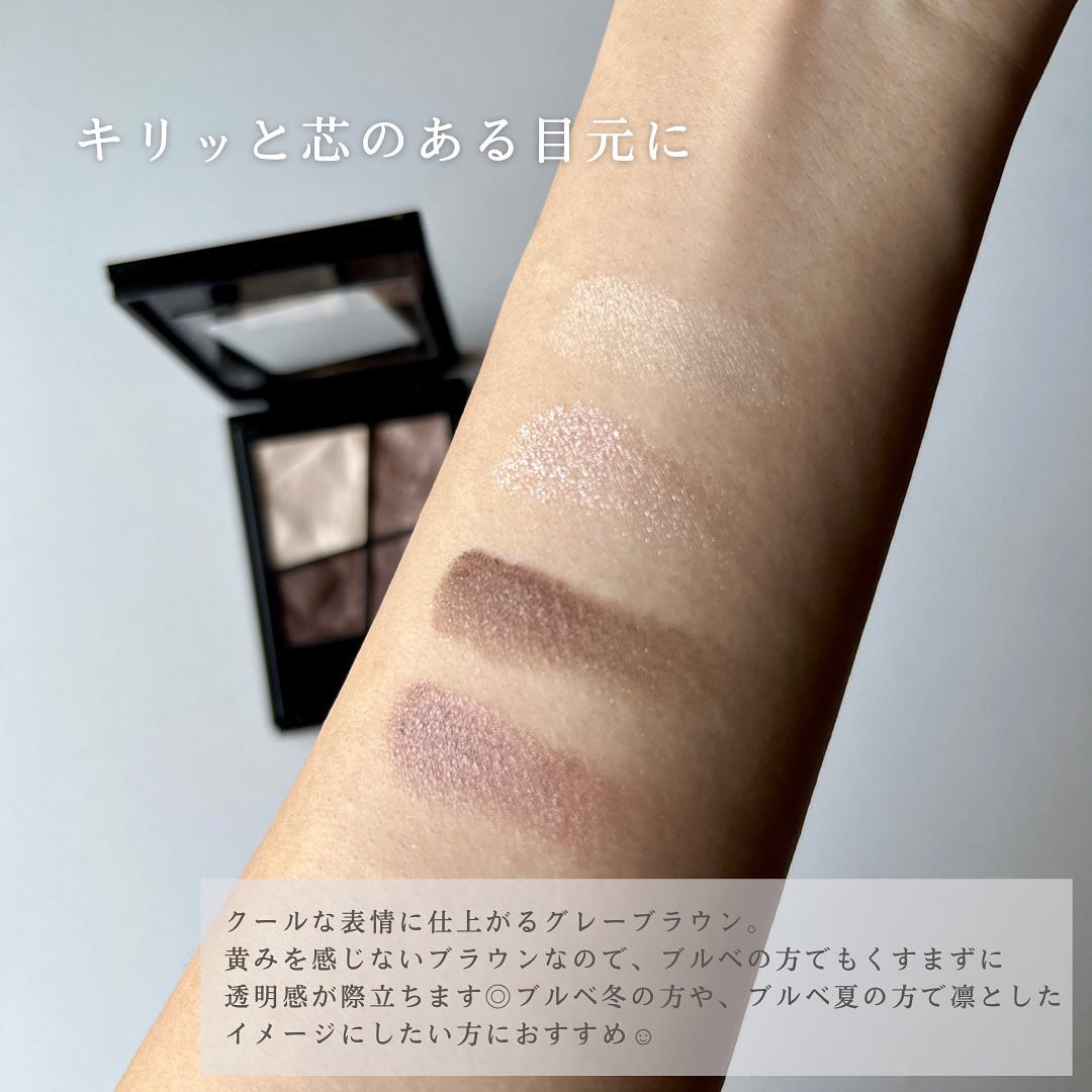 それぞれのカラーを重ねて塗ると、儚げなニュアンスカラーを楽しめます。 パープルやブルーはくすみがかった穏やかな色なので気品ある上品な目元に仕上がる。 もうそろそろ梅雨が始まりますが こちらのアイシャドウをつければ 気分が高まること間違いなしです🤍
