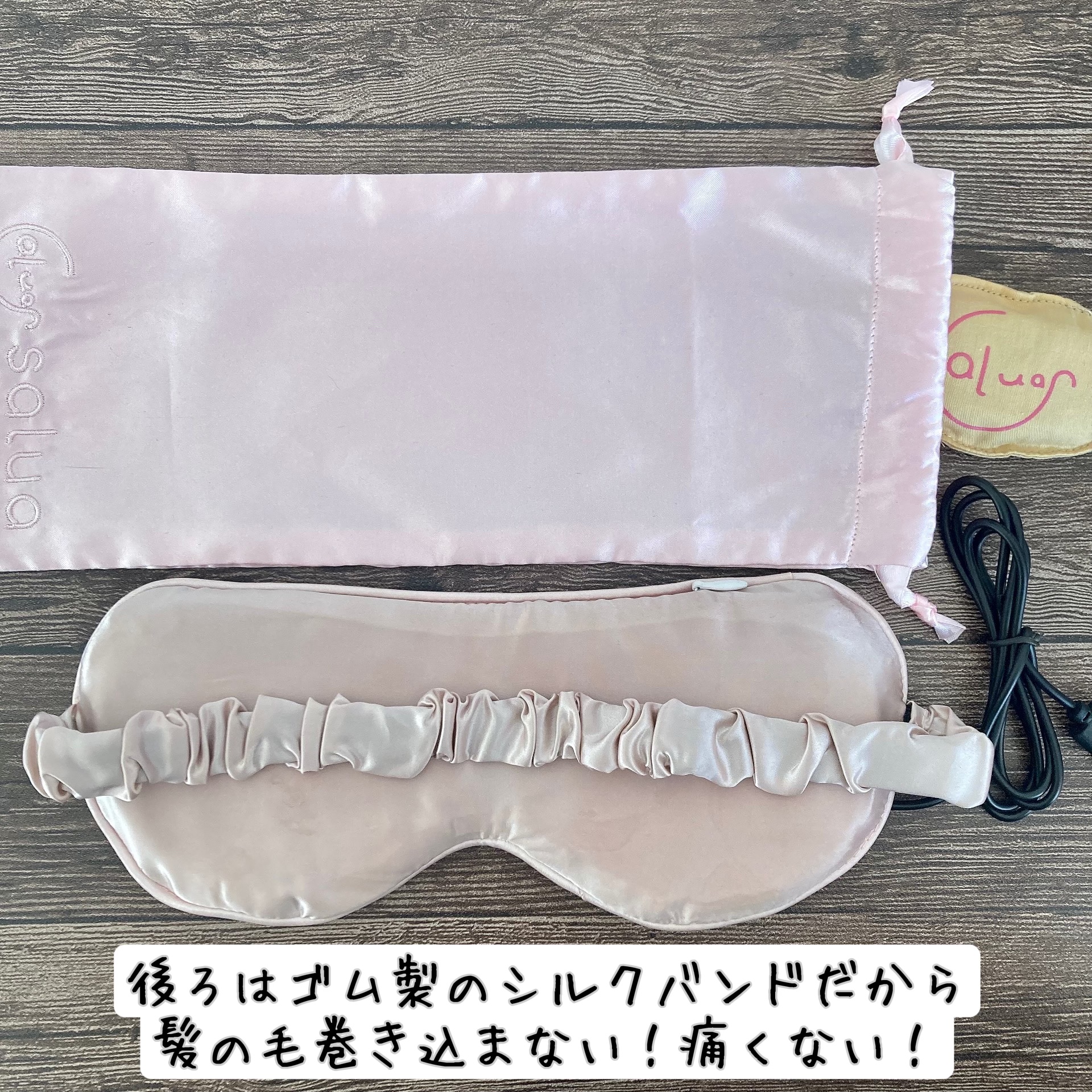 - 【使いやすいコードレスでストレスフリー】 安眠 や 目の疲れ などに使いたい ホットアイマスク 。実は ホット アイマスク の約9割がコード付きなので「コードが邪魔になる…」「重い…」とストレスになることも。そんな悩みに応えて開発されたのがSaluaの ホットアイマスク コードレス 。ストレスフリーなのはもちろん、薄型ヒーター採用で74gの超軽量!余計なイライラを感じることなく、 リラックス できます♪ 【便利で経済的な USB 充電式 】 Saluaの ホットアイマスク usb は、 便利な 充電式 !フル充電は約2時間で完了。1度の充電で高温モードで約2回、低温モードで約3回の使用が可能です。充電して繰り返し使えるから、とっても経済的!着け心地の良さを追求し、 USB の挿し口は表側、顔に当たらないように設計しました。サラサラふわふわ、優しく包み込まれるような極上の肌触りをお楽しみください。 ※充電アダプターは付属しておりません。推奨アダプター:5V/1-2A:Total:5Wー10W 【2段階の温度調整&オートオフタイマー】 「リモコンで温度調整するのが手間…」そんなお悩みの声に応え、Saluaの アイマスク 充電式 の操作はシンプル。本体の電源ボタンひとつでカンタンに温度調整が可能です。調整モードは「高温」と「低温」の2種類。高温モードは38~50度のコア温度で使用後10分程度で深部までしっかり温めます。さらに、30分経つと自動で電源OFFになるオートオフタイマーつき。睡眠前の使用でも消し忘れる心配がなく、身も心もリラックス…ぐっすり 安眠 できます♪ 【さらさら シルク 100%で年中快適♪】 アイマスク表面は、蒸れにくく肌当たりの優しい高級シルク100%。ラグジュアリーでリッチな肌触り。冬は暖かく、夏はサラッと涼しく快適!季節を問わず使いやすい アイマスク コードレス です。目元に優しくフィットするから薄いのにしっかり 遮光 。仮眠や 眼精疲労 が気になる時の休憩タイムにもぴったり。温めずにそのままアイマスクとして使うことで高い 遮光性 を発揮、あなたの 安眠 をサポートします。 【実用的・さらに高機能!】 洗濯可能のアイマスクカバー入り!いつでも洗えて、常に清潔。うれしい収納付きで、旅行やお泊まりの時でもスマートに持ち運べます!頭回りに快適にフィットするゴムバンドと、調整アジャスター付きで好みのサイズにラクラク調整♪頑張るあなたに至福のひとときをお届けしたい…Salua ホットアイマスク はあなたのリラックスタイムをサポートするため、「衛生面」「機能」「使い心地」にとことんこだわりました。
