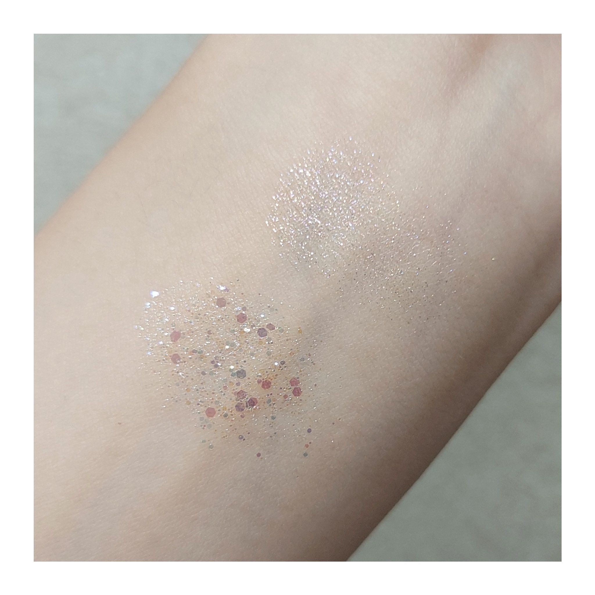 ♡筆が細筆なので涙袋にも塗りやすいです👍🏻🤍 ♡発色もかなりいいのでアイシャドウにも使いやすいかなと思います! フラワーノーズから久しぶりのグリッターなので全色買ってみたのですが全部大当たりでした🥹