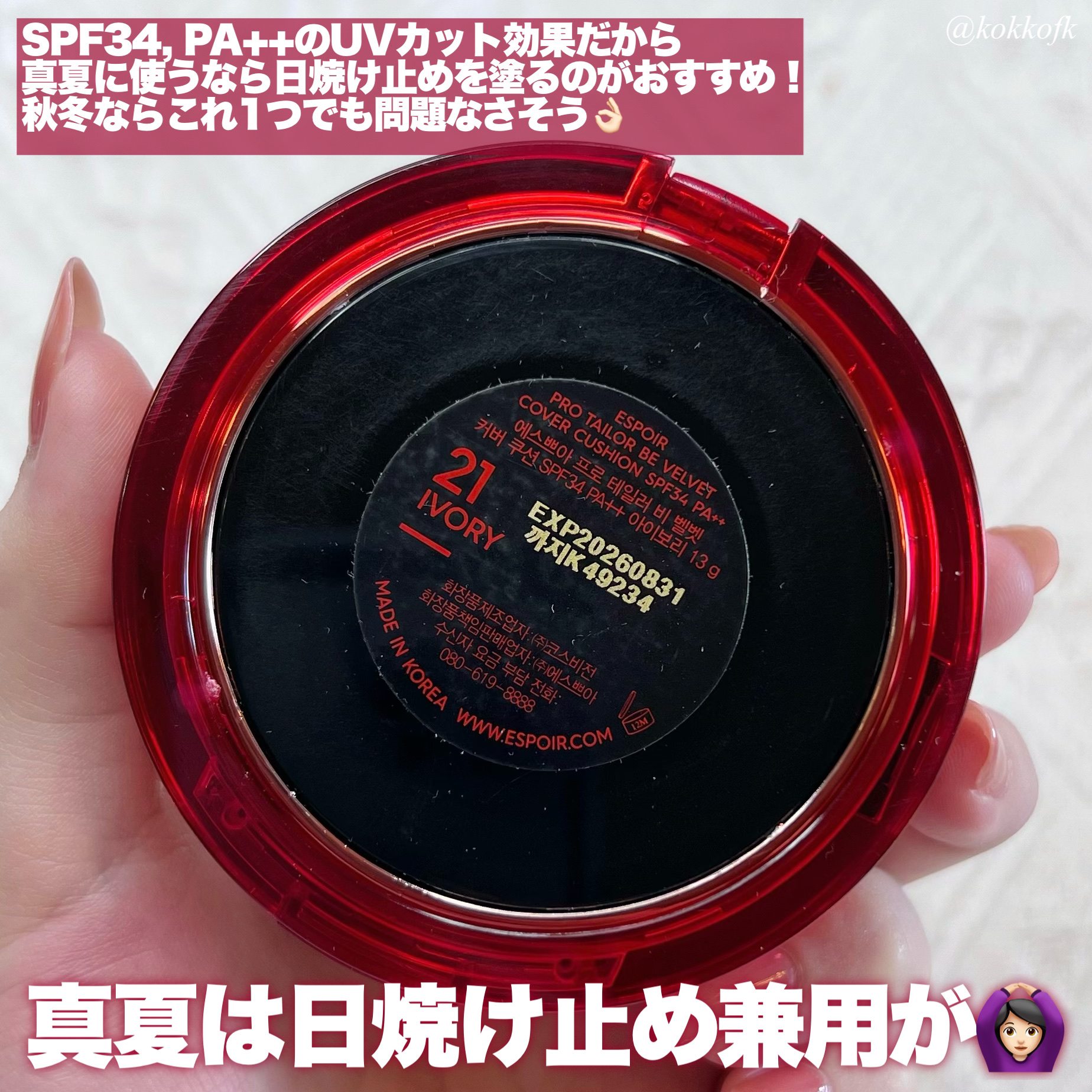 espoirビーベルベットカバークッション21号アイボリー「espoir2月プレゼントキャンペーン」で当選させていただきました。高いカバー力があるのに厚ぼったさのない薄膜セミマット仕上がり🪄一日中乾燥を感じず崩れにくかった🩷#エスポア#esp...
