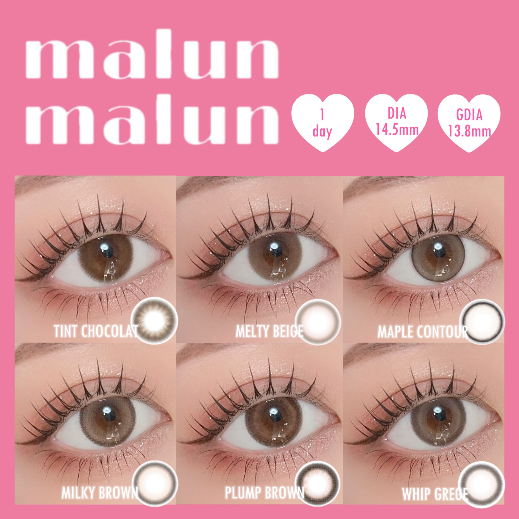 今回の新色もめっちゃ可愛い!! momohoちゃんイメージモデルの"malun malun" 太フチなのに太フチ感少なめでつけられるので大きめのカラコンが好きだけどカラコン感はそこまで出したくないって人にも良さそう♡ 瞳がぷるぷるに見える繊細なグラデーションと可愛いグレージュでかなりお気に入り!!