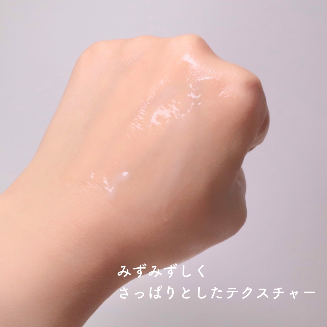 テクスチャ:杏仁豆腐のようなプルプルのテクスチャです。 ビタミンEとナイアシンアミド配合で美白と保湿を一度にケアしてくれるのが嬉しい✿ 寝る前につけると翌朝しっとりツヤツヤな感じがしました🥰