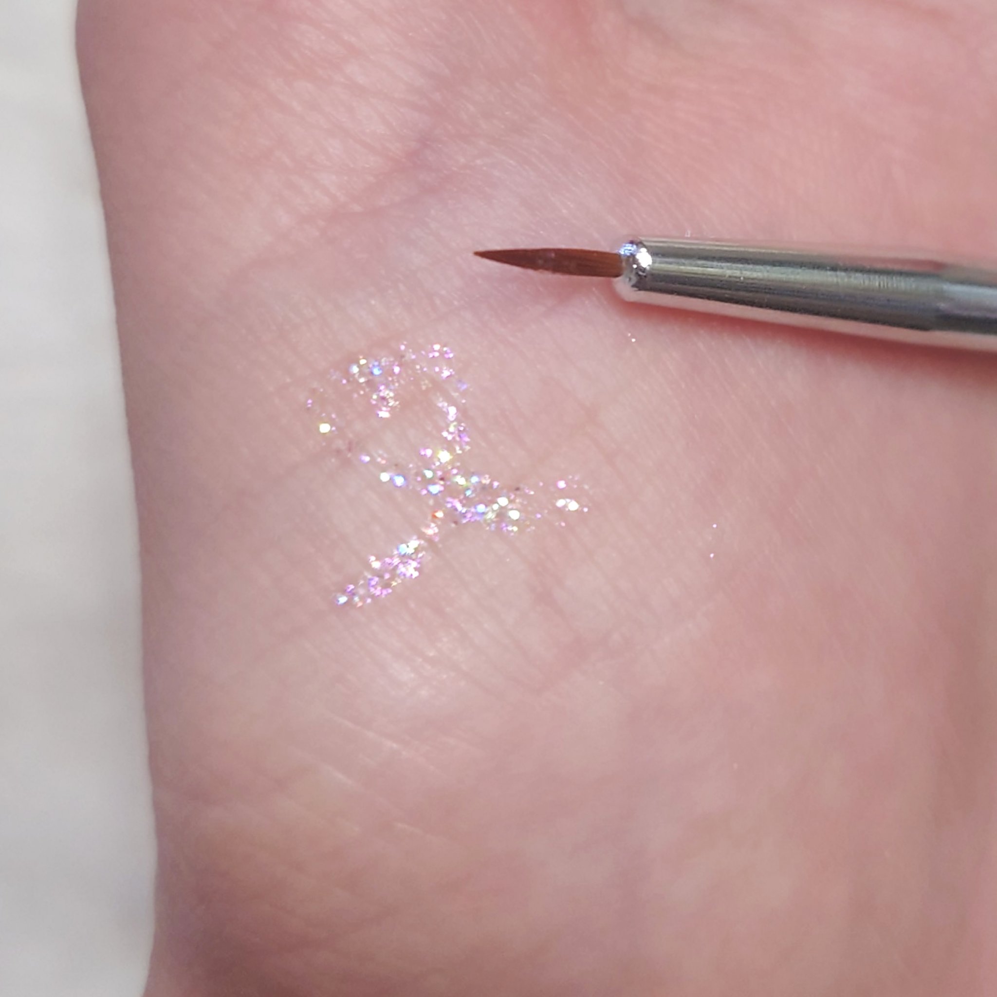 ガラスのような透明感のある光沢&カラー きらめくうるっとした目元に👀 53%以上のウォーターベースでラメ飛びもしづらいし、パキパキすることもない グリッター専用ブラシ付きだからポイントでのせたいときにも便利💡