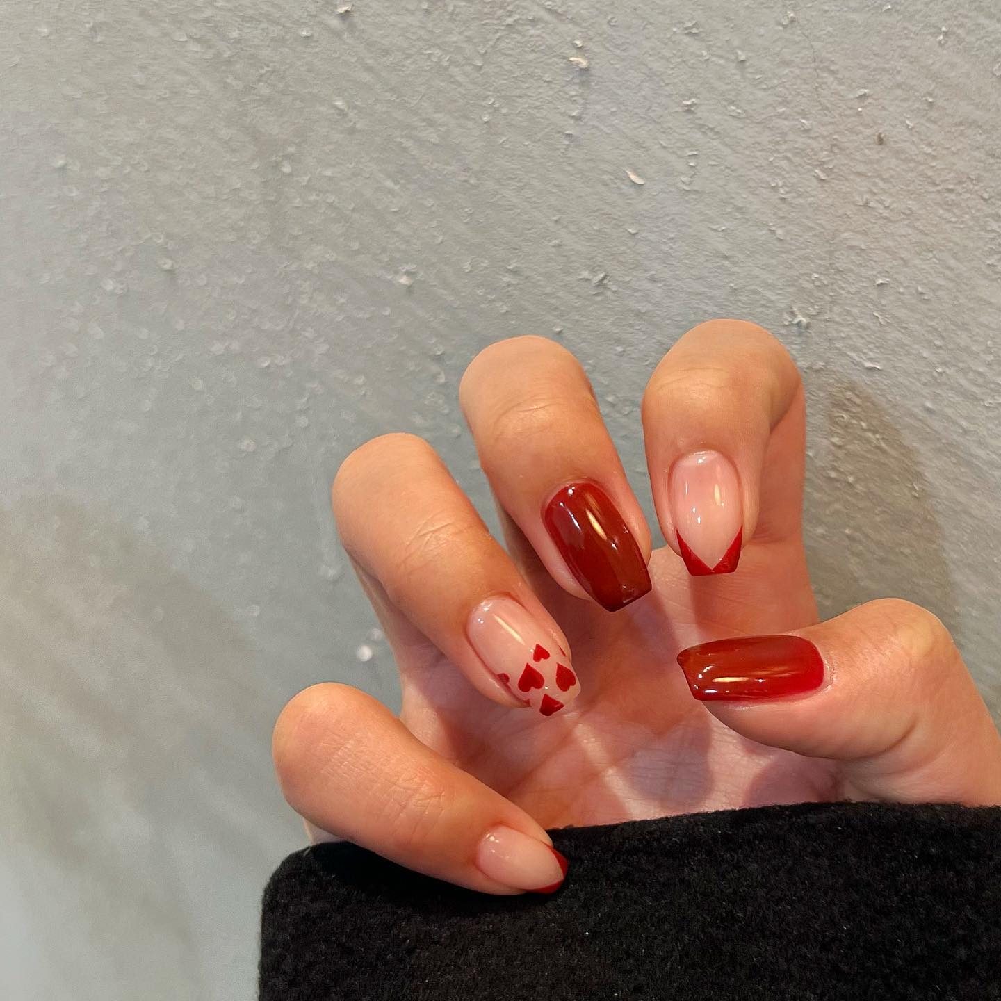 いつも可愛いネイルをしてる、あやかちゃん♡あやかちゃんがバレンタインにしていた、♡のネイルが可愛くて、同じカラーを探して挑戦してみた|•'-'•)و✧…が、なぜかあやかちゃんみたく可愛い♡は描けないし、逆やし、チェックも微妙…😢でもNAIL...
