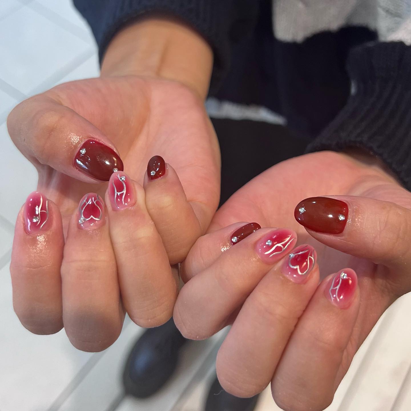 ・・・𝐌𝐢𝐫𝐫𝐨𝐫𝐛𝐚𝐥𝐥✨🪩✨️ちゅるんベージュに合わせたエッジのきいたミラーボールネイル🪩🖤⛓️韓国みもあって、シンプルに映えてキラキラでめちゃ可愛い🥹🫶💋いつも楽しみに来てくださり、こんな(中身ポンコツな)私に(w)寛大にご対応くださり...