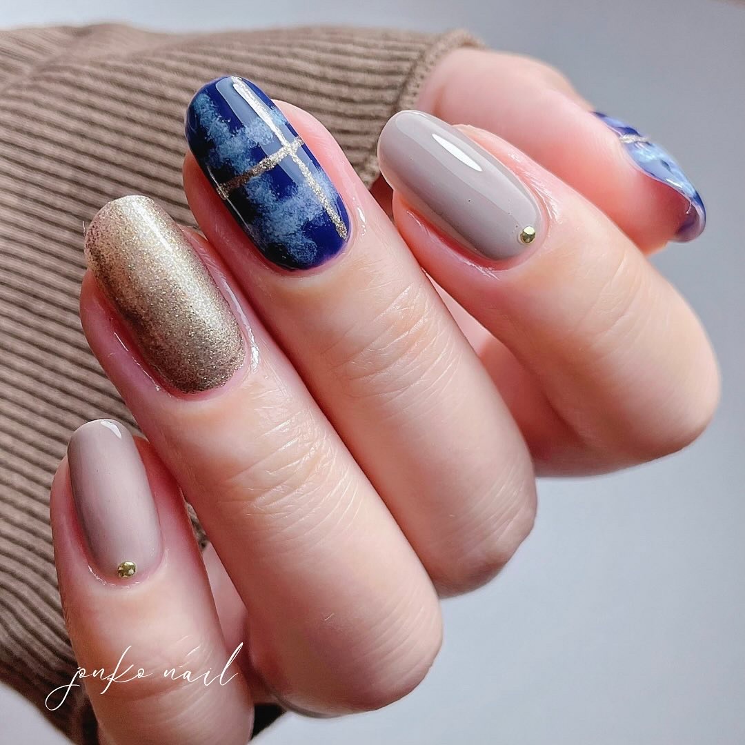 電車に乗っていたら向かいの可愛いお姉さんがこんな配色でネイルしてたんです☺️ それがどうにも可愛いくて…♡ 次のネイルは決まり!って思って スマホに「オレンジ、カーキ、アイボリー」ってメモしちゃいましたᝰ✍︎꙳⋆ こんな配色は自分では思いつかないなぁ🥺