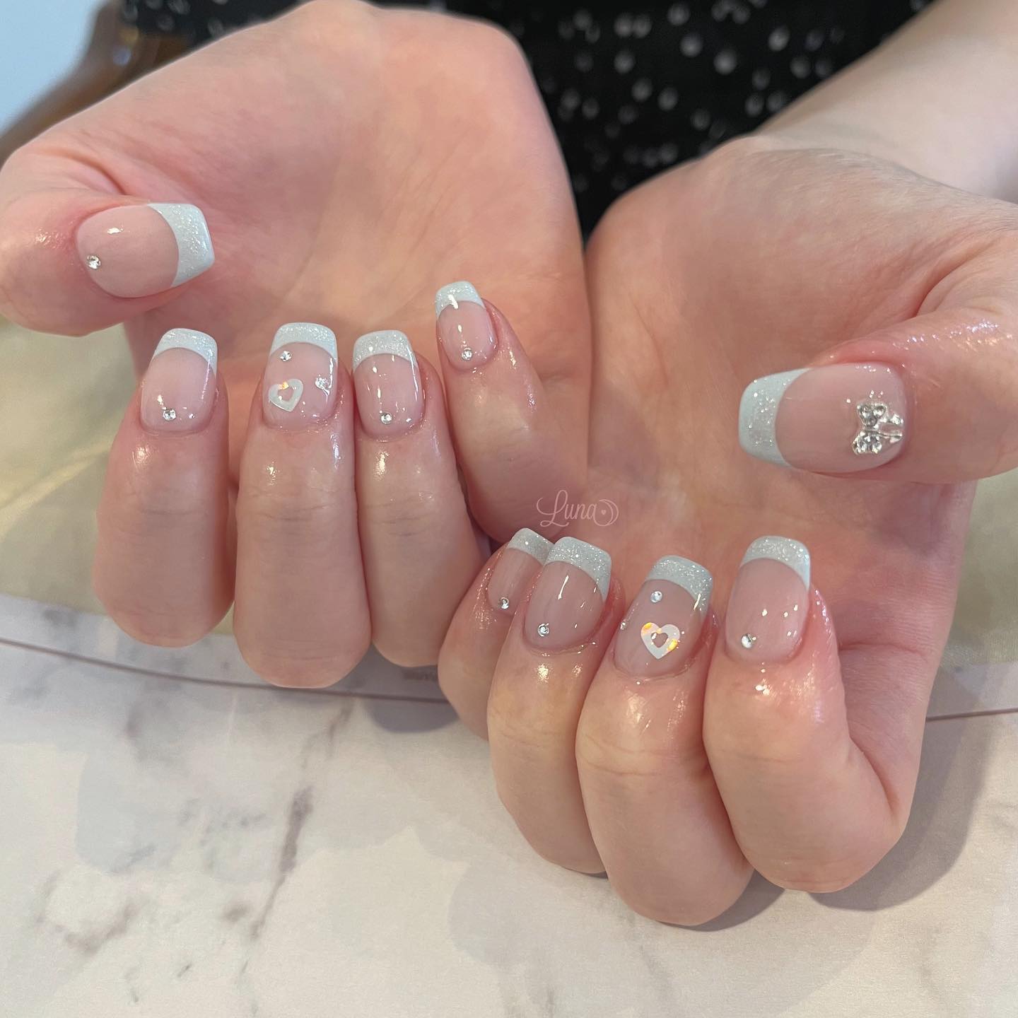 最近流行りのチェーン⛓️を使ったフレンチガーリーネイルです!ホワイトにカラー変更するだけでだいぶ印象が変わります🫶🏻薔薇、ハート、リボンを使い可愛いを詰め込みました💖カラー変更も可能なので自分好みのチップをオーダーしていただけます🙆🏻♀️ど...