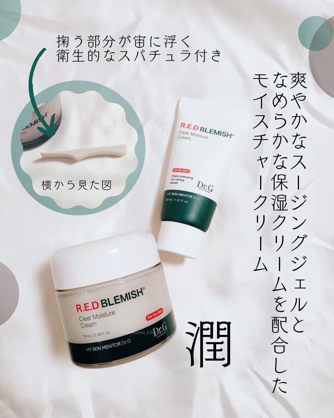 .Dr.Gレッドブレミッシュクリアモイスチャークリーム塗った瞬間とにかく保湿力があると思いました。なのにベタすぎずで使いやすい!!!ただ夏は重すぎるかもしれないなって思いました。乾燥肌の方にオススメです◎#drg#レッドブレミッシュクリアモイ...