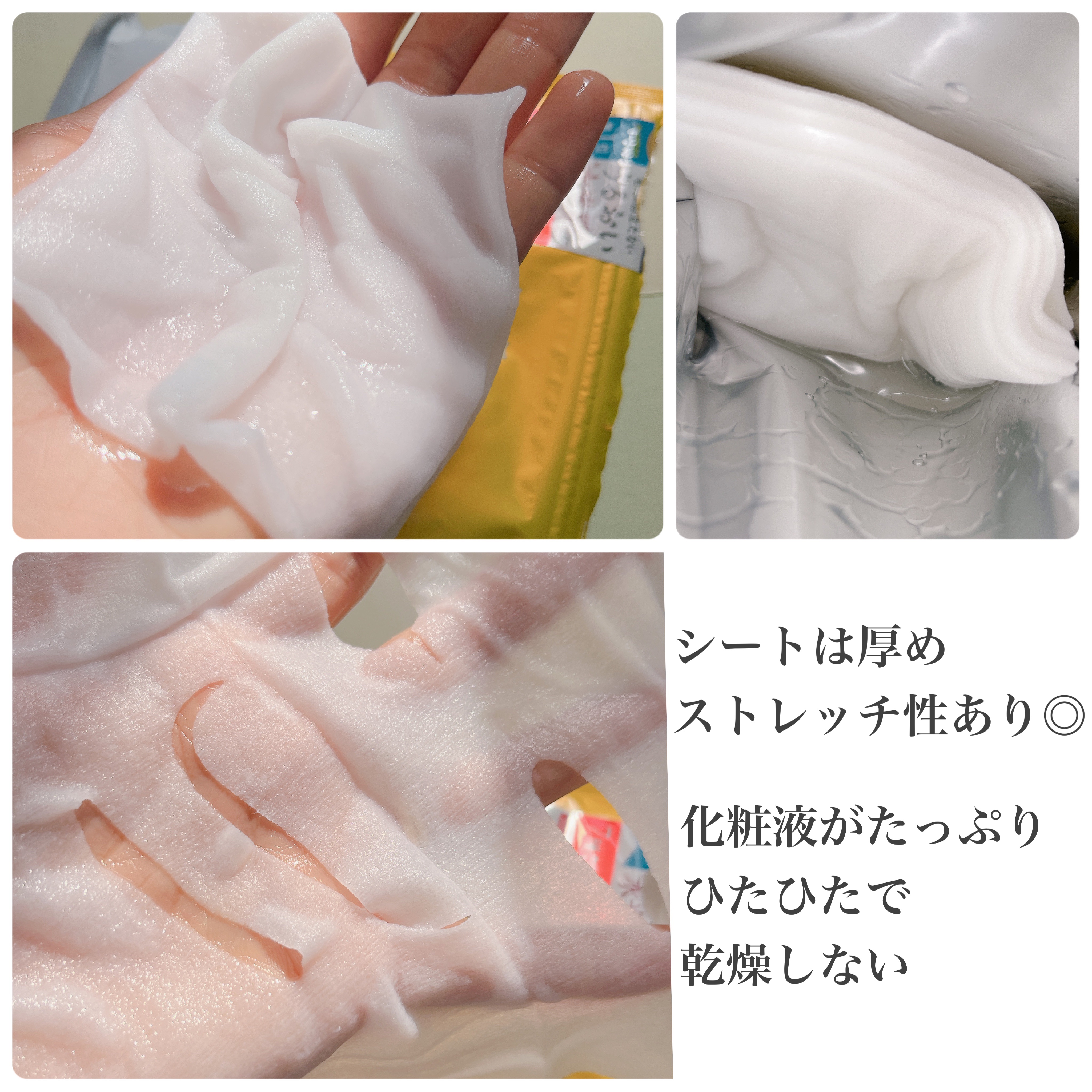 | やわらかい感触のシート♪ たっぷりの化粧水が含まれているのが分かるくらい うるうるしています😊 | 詳細を見る | |