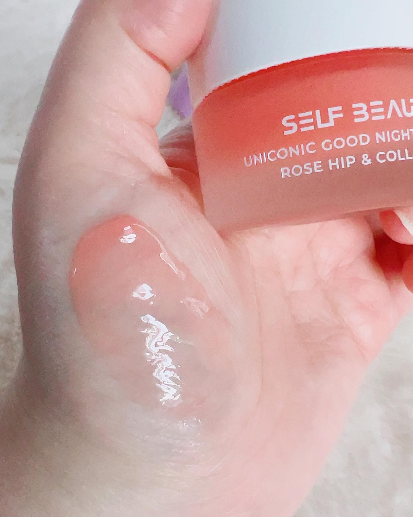 SELFBEAUTYのユニコーングッドナイトリップマスク ローズヒップ&コラーゲン🤍お試しさせていただきました🥰しっとりもちっとした仕上がりになります♡この商品は唇が割れたり敏感な唇の人はより差を感じられるそう🥺私はまさに乾燥しやすい唇なので...