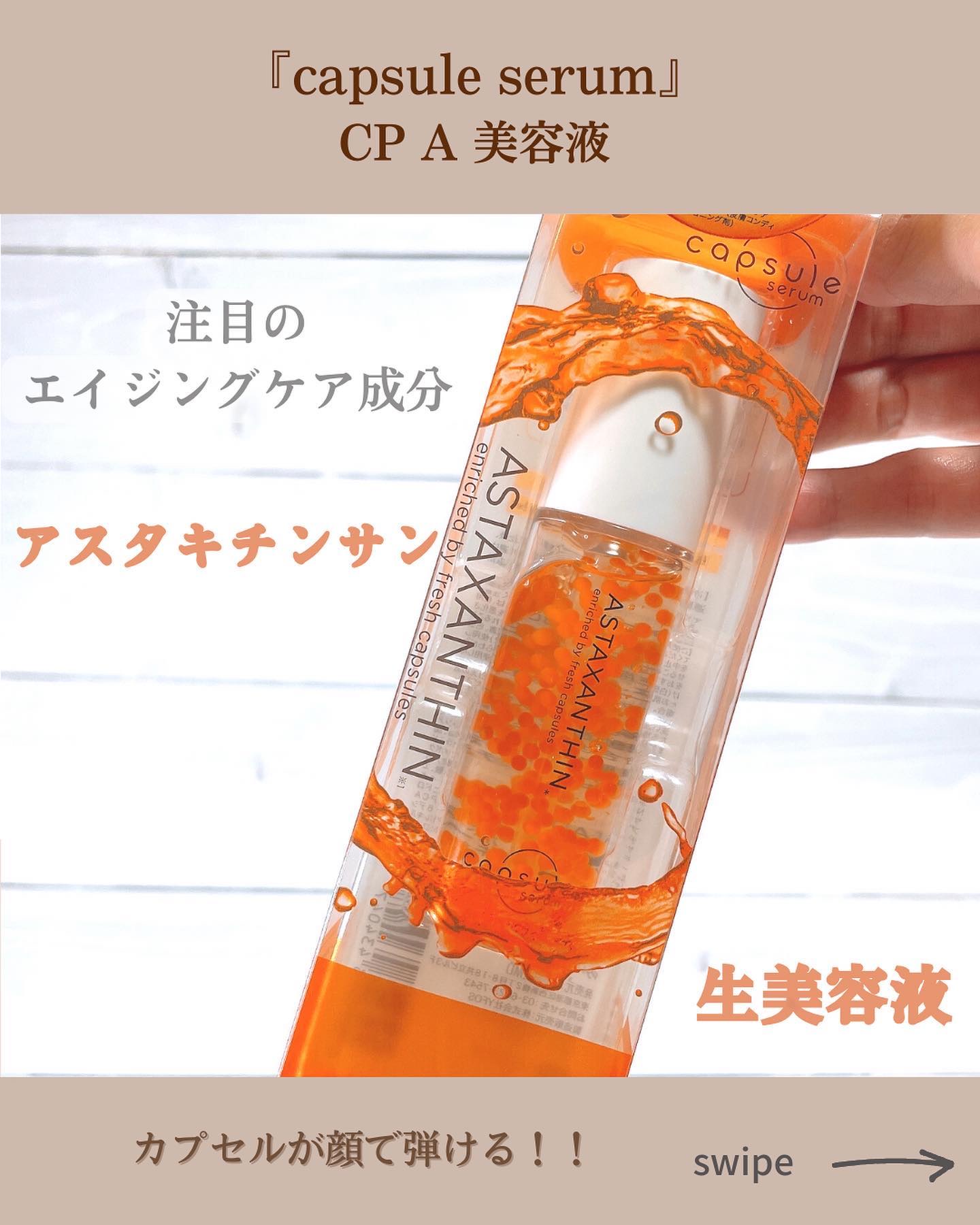 独自カプセルが成分本来のチカラを引き出す新・美容液! エイジングケア(年齢に応じた潤いケア)をサポートしてくれるセラムです。 ポンプタイプで弾けて出て来るのでとってもなめらか。