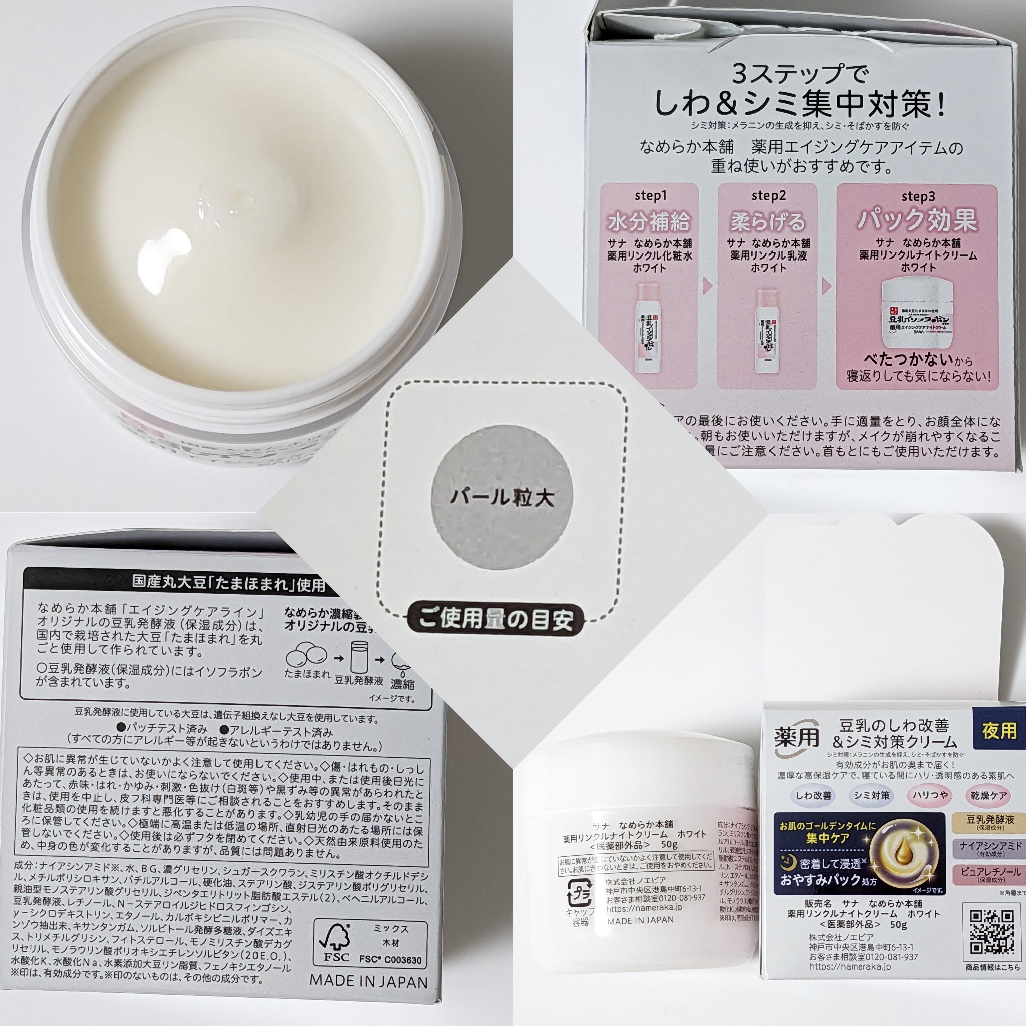 なめらか本舗薬用リンクルナイトクリームホワイト『睡眠中にしわ改善・シミ対策』・有効成分ナイアシンアミドでしわ改善・シミ対策!・ピュアレチノール×豆乳発酵液配合!・弾力感のある柔らかなお肌へ・ゴールデンタイムに集中ケア!おやすみパック処方・こっ...