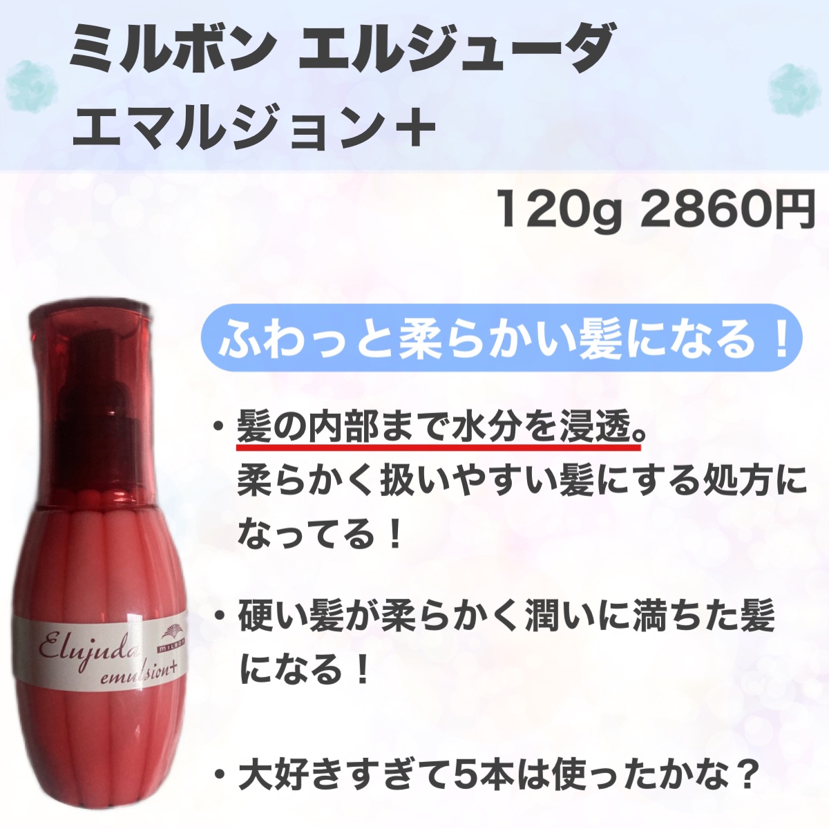 乾かすだけで、やわらかい髪へ! 3種のオイルの「グレイスブレンド処方」 「エルジューダ グレイスオン」は、3つのオイルがブレンドされた「グレイスブレンド処方」で構成されています。 美しく仕上がるヘアケアが自宅でできるのも利点!ミルボンは美容室向けのブランドで、サロン帰りのようなツヤのあるさらさらな仕上がりを目指せちゃうよ😎