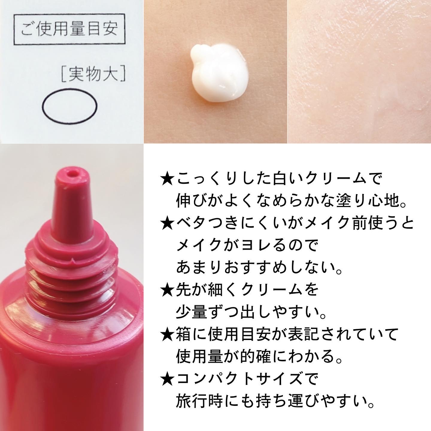 ナイアシンアミド配合でメラニンの生成を抑え、シミ・そばかすを防いでくれるよ💖 テクスチャーはこっくりなのに、サラッとしていて伸びも馴染みも◎ お顔全体に使えるので、目元に塗ったあとは、ほうれい線や口元にも塗ってケアしてるよ❣️
