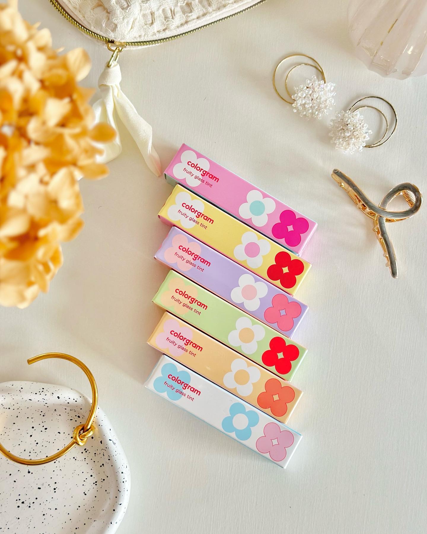 タンフル(フルーツ飴)のようなガラス玉ツヤと鮮やかな生果汁カラーが可愛すぎるティント🍬 なめらかでベタつきにくい軽い塗り心地で、もちっとツヤツヤ💋 やわらかい熟れた柿のような落ち着いた血色コーラルベージュ。