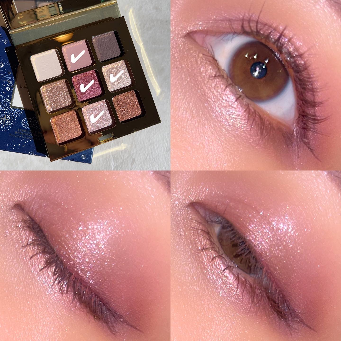 - 星空の煌めきを纏うアイカラーパレット 鮮烈な光を放ち眩いほどに輝く星のようなゴールドのパッケージが美しいアイシャドウパレット。マット~シマーの質感とトープ~ゴールドのニュートラルカラーにプラムのアクセントをプラスしたフェミニンかつシックなシェードバリエ―ションが、眩いほどに煌めく星空ような印象的な表情を叶えます。微細なピグメントがなめらかに目もとにしっとりなじみ、均一に発色。さらに、配合されたマルチディメンショナルパールが、肌を美しく立体的に輝かせ、ホリデーシーズンの高揚感を彩ります。タルクフリー・ウェット&ドライ使用可能。 【セット内容】限定1種(アイカラー 9色) ① CELESTIAL・・・クリーム(matte)② DIVINE・・・ダスティモーブ(matte)③ STARRY NIGHT・・・ディープパープルブラウン(matte)④ BRIGHTEST STAR ・・・ディープシャンパン(shimmer)⑤ PLUM MAGIC・・・リッチパープル(shimmer)⑥ ETHEREAL・・・ブライトシャンパンゴールド(shimmer)⑦ LUCKY STAR ・・・チェスナッツブラウン(shimmer)⑧ STAR DUST・・・ブライトベビーピンク(shimmer)⑨ COSMIC NIGHT・・・ディープブラウン(shimmer) *すべて限定色