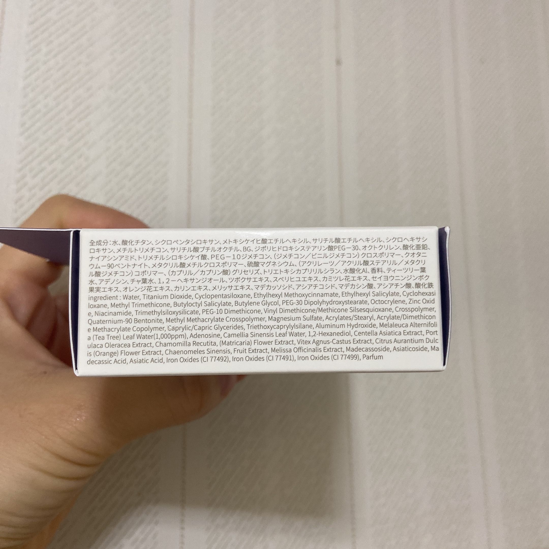 - <17号 ピュアアイボリー> 水、酸化チタン、シクロペンタシロキサン、メトキシケイヒ酸エチルヘキシル、サリチル酸エチルヘキシル、シクロヘキサシロキサン、メチルトリメチコン、サリチル酸ブチルオクチル、BG、ジポリヒドロキシステアリン酸PEG-30、オクトクリレン、酸化亜鉛、ナイアシンアミド、トリメチルシロキシケイ酸、PEG-10ジメチコン、(ジメチコン/ビニルジメチコン)クロスポリマー、クオタニウム-90ベントナイト、メタクリル酸メチルクロスポリマー、硫酸マグネシウム、(アクリレーツ/アクリル酸ステアリル/メタクリル酸ジメチコン)コポリマー、(カプリル/カプリン酸)グリセリズ、水酸化Al、トリエトキシカプリリルシラン、香料、ティーツリー葉水、アデノシン、チャ葉水、1,2-ヘキサンジオール、ツボクサエキス、スベリヒユエキス、カミツレ花エキス、セイヨウニンジンボク果実エキス、オレンジ花エキス、カリンエキス、メリッサエキス、マデカッソシド、アシアチコシド、マデカシン酸、アシアチン酸、酸化鉄 <21号 ニュートラルベージュ> 水、酸化チタン、シクロペンタシロキサン、メトキシケイヒ酸エチルヘキシル、サリチル酸エチルヘキシル、シクロヘキサシロキサン、メチルトリメチコン、サリチル酸ブチルオクチル、BG、ジポリヒドロキシステアリン酸PEG-30、オクトクリレン、酸化亜鉛、ナイアシンアミド、トリメチルシロキシケイ酸、PEG-10ジメチコン、(ジメチコン/ビニルジメチコン)クロスポリマー、クオタニウム-90ベントナイト、メタクリル酸メチルクロスポリマー、硫酸マグネシウム、(アクリレーツ/アクリル酸ステアリル/メタクリル酸ジメチコン)コポリマー、(カプリル/カプリン酸)グリセリズ、トリエトキシカプリリルシラン、水酸化Al、香料、ティーツリー葉水、アデノシン、チャ葉水、1,2-ヘキサンジオール、ツボクサエキス、スベリヒユエキス、カミツレ花エキス、セイヨウニンジンボク果実エキス、オレンジ花エキス、カリンエキス、メリッサエキス、マデカッソシド、アシアチコシド、マデカシン酸、アシアチン酸、酸化鉄 <23号 サンドベージュ> 水、酸化チタン、シクロペンタシロキサン、メトキシケイヒ酸エチルヘキシル、サリチル酸エチルヘキシル、シクロヘキサシロキサン、メチルトリメチコン、サリチル酸ブチルオクチル、BG、ジポリヒドロキシステアリン酸PEG-30、オクトクリレン、酸化亜鉛、ナイアシンアミド、トリメチルシロキシケイ酸、PEG-10ジメチコン、(ジメチコン/ビニルジメチコン)クロスポリマー、クオタニウム-90ベントナイト、メタクリル酸メチルクロスポリマー、硫酸マグネシウム、(アクリレーツ/アクリル酸ステアリル/メタクリル酸ジメチコン)コポリマー、(カプリル/カプリン酸)グリセリズ、トリエトキシカプリリルシラン、水酸化Al、香料、ティーツリー葉水、アデノシン、チャ葉水、1,2-ヘキサンジオール、ツボクサエキス、スベリヒユエキス、カミツレ花エキス、セイヨウニンジンボク果実エキス、オレンジ花エキス、カリンエキス、メリッサエキス、マデカッソシド、アシアチコシド、マデカシン酸、アシアチン酸、酸化鉄
