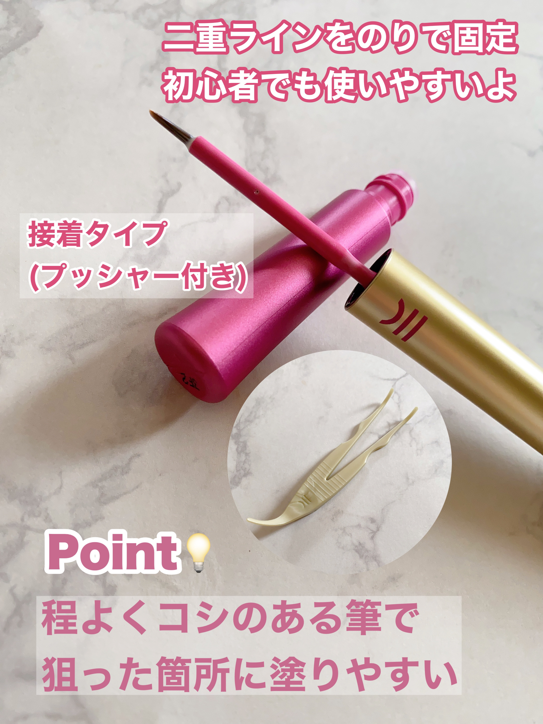 - 【無敵の実現力】 ・ふたえラインをのりで固定するタイプ ・ひとえの方、左右差のある方 ・接着の強さと美しさを両立したい方にオススメ ・絶妙な強度で違和感なし ・細いラインでもしっかり接着 ・クセ付け・保湿成分配合
