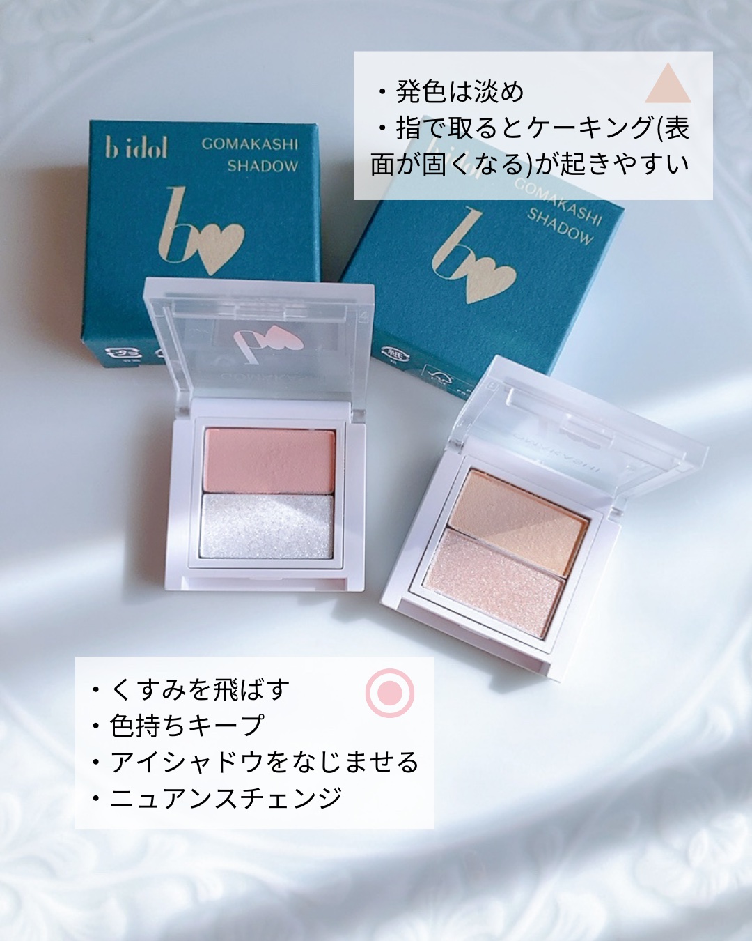 コスメ好きにとって嬉し過ぎる立地💕 ビル丸ごと一棟がb idol仕様になっていて、その規模に改めて驚き😳 内装は映えスポットだらけで、至るところにアカリンのサインや写真が🥺 商品がたくさん置いてあってお試し出来るスペースがあり、とっても可愛かったのですが、人が多かったためお写真は撮れず💦 気になっていたごまかしシャドウ🥰 手持ちのアイシャドウと合わせやすい色味で嬉しい✨