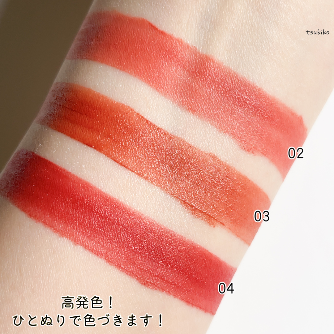 | 乾燥しにくく、艶感をキープしてくれて、ティント特有の色持ちも良く、ぷるっとしたジューシーな唇に仕上がります | 詳細を見る | |