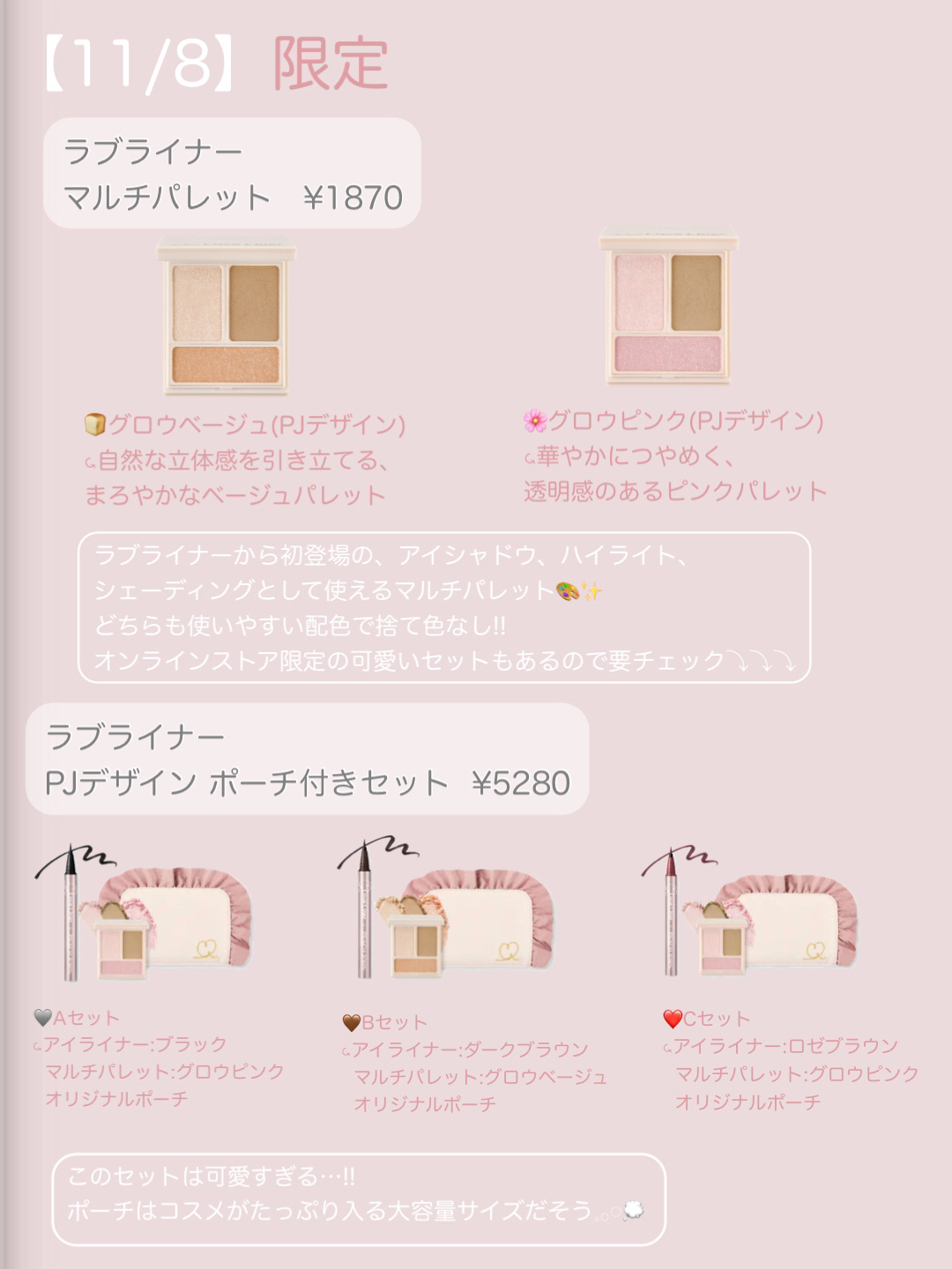 2024年冬コスメ【11月発売】の「コスメカレンダー」を複数回にわけて紹介していきます! ■11月21日(木)発売 → A’pieu(#アピュー) → #&be(#アンドビー) → #ettusais(#エテュセ) → クレ・ド・ポー ボーテ(Clé de Peau Beauté) → #マキアージュ(#MAQuillAGE) → #マジョリカマジョルカ(#MAJOLICAMAJORCA) → #LUSH(#ラッシュ) 次回も話題の新作コスメの最新情報などご紹介しますのでお楽しみに!