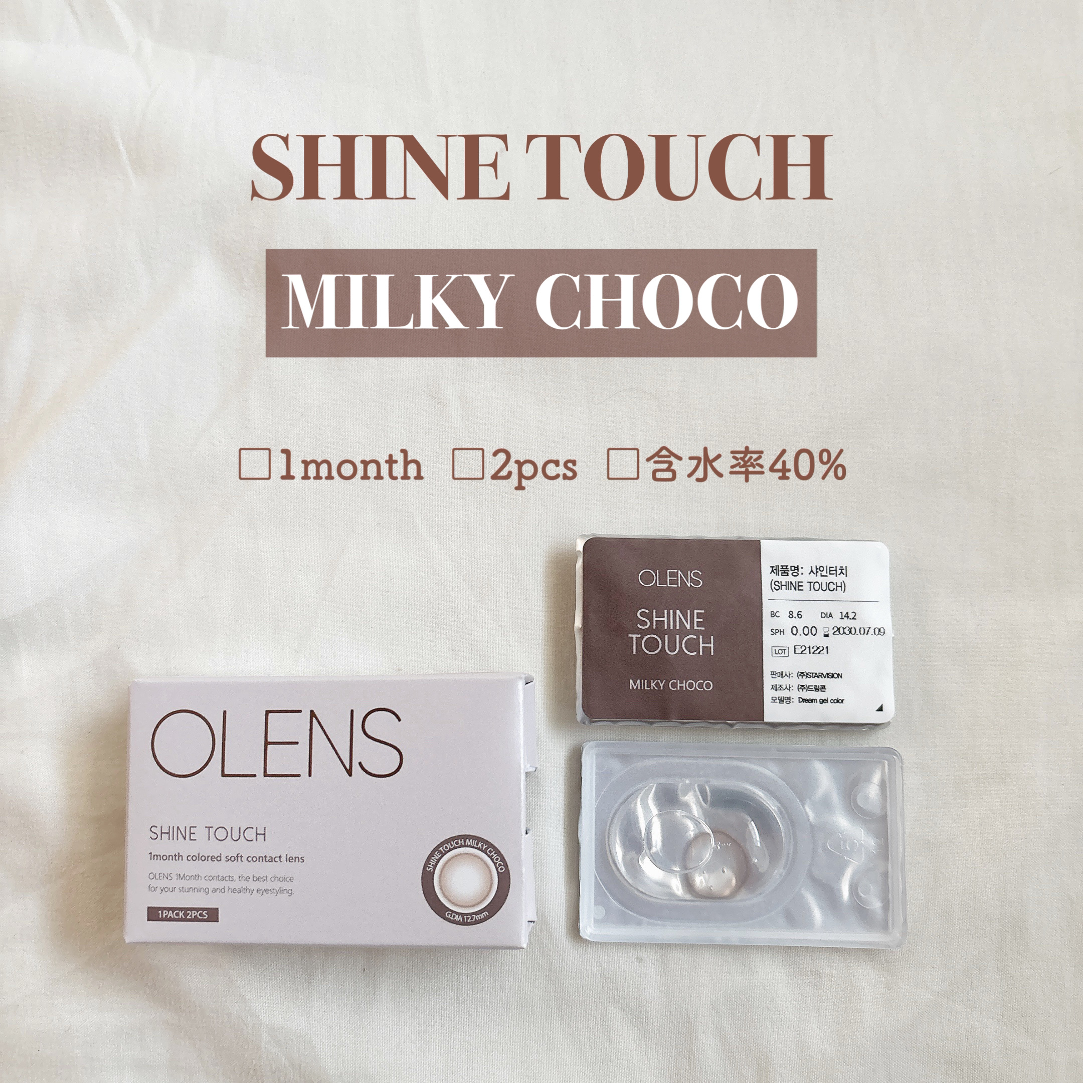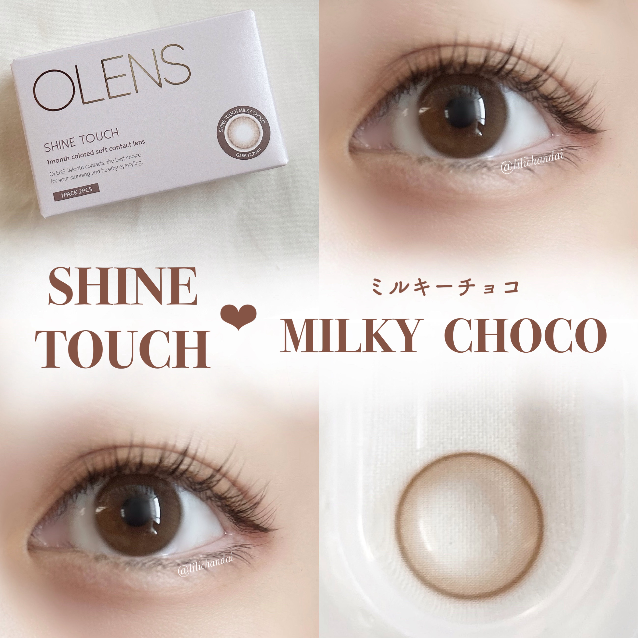 - ■OLENS ShineTouch(オーレンズシャインタッチ) 韓国カラコン業界の人気ブランド『OLENS(オーレンズ)』の日本正式承認商品シリーズ。ふんわりミルキーなカラーとほんのりした細フチとベースカラーの奥側にサークルラインを配置されたデザイン。“柔らかくてミルキーなカラー感”のあるナチュラルな瞳を表現。世界中から注目を浴びるグループ「NewJeans (ニュージーンズ)」がイメージモデル。流行、季節に問わずデイリーで着用できるカラコン「シャインタッチ」シリーズがついに日本で新発売!本来の瞳と馴染みやすいのでデイリーで着用しやすいシリーズです。 発売開始日:2024年4月19日 モアコンタクトで発売 ■使い方 コンタクトレンズは高度管理医療機器です。必ず眼科医の処方に従って購入してください。 ■使用上の留意事項 コンタクトレンズは高度管理医療機器です。眼科医の指導に従い装用期間を厳守し、正しくお使いください。眼の定期検査を必ず受けてください。添付文書を必ず読み、取扱方法、装用時間を守って正しくお使いください。少しでも異常を感じたら、直ちに眼科医の検査を受けてください。