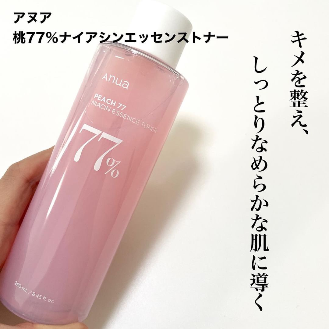みずみずしい透明感、肌にチャージ🫧Anua桃77ナイアシンエッセンストナー\ピーチエキス×ナイアシンアミド配合!/ツルッとしたキメ肌に整え、メイクの土台を整えてくれるトナー✨💧少しとろみがあるのにベタつかずしっとり保湿💧重ね付けやコットンパッ...