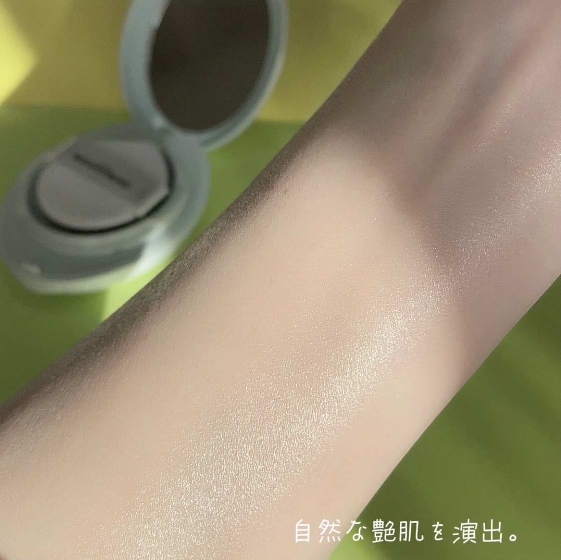 ミラーとしずく型のパフ付きで持ち運びにも便利。メイクの上から使えます😊 もち米由来の自然パウダーとカラーミングパウダーで紫外線で敏感になった肌の熱を落ち着かせてすべすべの仕上がりに。 ジュワッとみずみずしいテクスチャで肌に乗せるとややひんやり感あり。お肌もしっとり、明るく見えて小鼻の際の赤みもカバー✨