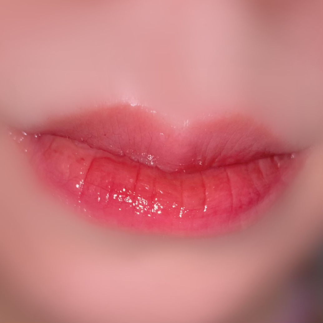 ワンコインで買えて、発色も色持ちもよくてコスパいいです🥳✨ めっちゃ潤うという訳ではないですが、乾燥もそこまで気になりませんでした🙆🏻♀️ ピンクというより赤に近い発色です💄 香りが独特なのと口に入ると変な味がします😭