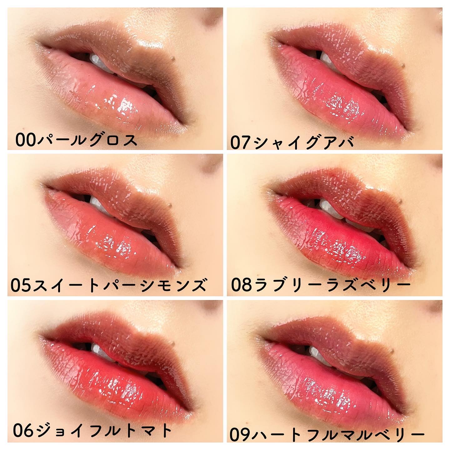 - <00.PEARL GLOSS> 水添ポリイソブテン、カプリル酸/カプリン酸トリグリセリド、リンゴ酸ジイソステアリル、パルミチン酸デキストリン、乳酸メンチル、1,2-ヘキサンジオール、ホウケイ酸アルミニウムカルシウム、香料、二酸化チタン。、酸化スズ <01.FLASHING APRICOT> 精製水、アジピン酸ビス-ジグリセリルポリアクリル-2、マレイン酸ジイソステアリル、ジフェニルジメチコン、オクチルドデカノール、グリセリン、セチルPEG/PPG-10/1ジメチコン、ジプロピレングリコール、エチルセルロース、イソステアリン酸ソルビタン、ペンチレングリコール、アクリル酸ヒドロキシエチル/アクリロイルジメチルタウリン酸ナトリウム共重合体、スクワラン、セテアレス-20、ステアロイルグルタミン酸ナトリウム、二酸化チタン、エタノール、フェノキシエタノール、ポリソルベート60、香料、カプリル酸グリセリル、黄色4号5、イエローNO. 227、エチルヘキシルグリセリン、赤色NO. 104、レッドNO. 1 (XNUMX)、水酸化アルミニウム、ポリアクリル酸アンモニウム、ブチレングリコール、テトラ-ジ-T-ブチルヒドロキシヒドロ桂皮酸ペンタエリスリチル <02.DEWY GRAPEFRUIT> 精製水、アジピン酸ビス-ジグリセリルポリアクリル-2、マレイン酸ジイソステアリル、ジフェニルジメチコン、オクチルドデカノール、グリセリン、セチルPEG/PPG-10/1ジメチコン、ジプロピレングリコール、エチルセルロース、イソステアリン酸ソルビタン、ペンチレングリコール、アクリル酸ヒドロキシエチル/アクリロイルジメチルタウリン酸Na、スクワラン、セテアレス-20、ステアロイルグルタミン酸Na、エタノール、二酸化チタン、フェノキシエタノール、ポリソルベート60、香料、カプリル酸グリセリル、黄色5号227、レッドNO. 4、イエローNO. 104、エチルヘキシルグリセリン、赤色NO. 1 (XNUMX)、水酸化アルミニウム、ポリアクリル酸アンモニウム、ブチレングリコール、テトラ-ジ-T-ブチルヒドロキシヒドロ桂皮酸ペンタエリスリチル <03.SODA COOL PEACH> 精製水、アジピン酸ビスジグリセリルポリアクリル酸-2、マレイン酸ジイソステアリル、ジフェニルジメチコン、オクチルドデカノール、グリセリン、セチルPEG/PPG-10/1ジメチコン、ジプロピレングリコール、エチルセルロース、イソステアリン酸ソルビタン、ペンティレングリコール、アクリル酸ヒドロキシエチル/アクリロイルジメチルタウリン酸Na、スクワラン、セテアレス-20、ステアロイルグルタミン酸Na、エタノール、フェノキシエタノール、二酸化チタン、ポリソルベート60、香料、カプリル酸グリセリル、赤色NO. 104 (1)、エチルヘキシルグリセリン、黄色No. 5、レッドNO. 227、イエローNO. 4、水酸化アルミニウム、ポリアクリル酸アンモニウム、青色NO. 1、ブチレングリコール、ペンタエリスリチルテトラ-ジ-T-ブチルヒドロキシヒドロシンナメート <04.ADORABLE BERRY> 精製水、アジピン酸ビス-ジグリセリルポリアクリル-2、マレイン酸ジイソステアリル、ジフェニルジメチコン、オクチルドデカノール、グリセリン、セチルPEG/PPG-10/1ジメチコン、ジプロピレングリコール、エチルセルロース、イソステアリン酸ソルビタン、Pエチレングリコール、アクリル酸ヒドロキシエチル/アクリロイルジメチルタウリン酸Na、スクワラン、セテアレス-20、ステアロイルグルタミン酸Na、エタノール、フェノキシエタノール、ポリソルベート60、香料、カプリル酸グリセリル、赤色NO. 104 (1)、二酸化チタン、エチルヘキシルグリセリン、赤色 NO. 227、イエローNO. 5、イエローNO. 4、水酸化アルミニウム、ポリアクリル酸アンモニウム、ブチレングリコール、テトラ-ジ-T-ブチルヒドロキシヒドロケイ皮酸ペンタエリスリチル、青色NO. 1 <05.SWEET PERSIMMON> 精製水、ポリアシルアジピン酸ビスジグリセリル-2、マレイン酸ジイソステアリル、ジフェニルジメチコン、オクチルドデカノール、グリセリン、セチルPEG/PPG-10/1ジメチコン、ジプロピレングリコール、エチルセルロース、イソステアリン酸ソルビタン、ペンチレングリコール、アクリル酸ヒドロキシエチル/ナトリウムアクリロイルジメチルタウリン共重合体、スクワラン、セテアレス-20、ステアロイルグルタミン酸Na、エタノール、二酸化チタン、フェノキシエタノール、ポリソルベート60、香料、黄色5号、カプリル酸グリセリル、赤色227号、エチルヘキシルグリセリン、水酸化アルミニウム、ポリアクリル酸アンモニウム、黄色4号、赤色104号(1)、青色1号、ブチレングリコール、ペンタエリスリチルテトラ-ジ-t-ブチルヒドロキシヒドロシンナメート <07.SHY GUAVA> 精製水、ポリアシルアジピン酸ビスジグリセリル-2、マレイン酸ジイソステアリル、ジフェニルジメチコン、オクチルドデカノール、グリセリン、セチルPEG/PPG-10/1ジメチコン、ジプロピレングリコール、エチルセルロース、イソステアリン酸ソルビタン、ペンチレングリコール、アクリル酸ヒドロキシエチル/ナトリウムアクリロイルジメチルタウリン共重合体、ス