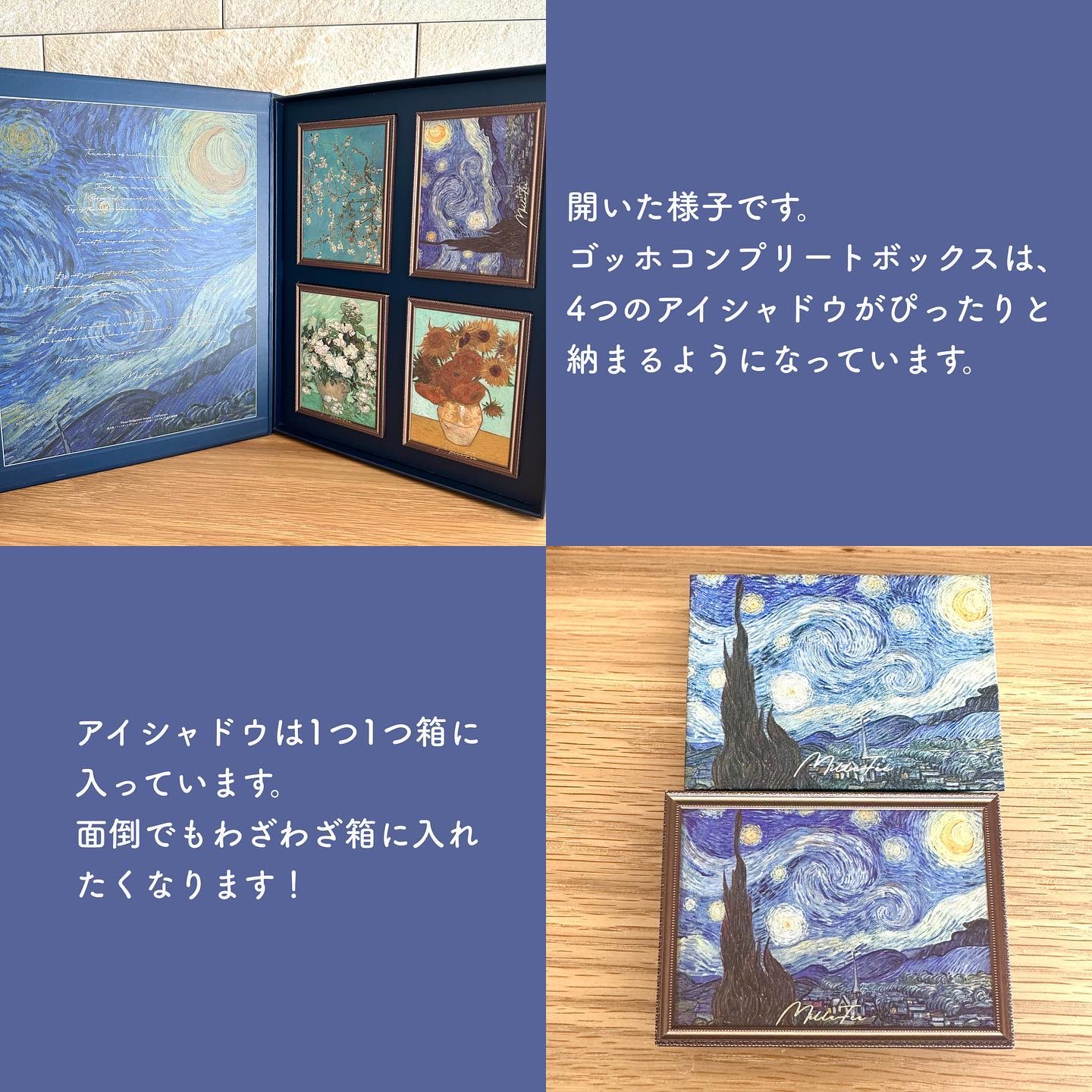 - 世界の芸術を瞳に落とし込む。 絵画からインスピレーションを得たアイシャドウパレット。 肌に溶け込むようになじむ、軽いつけ心地の柔らかいパウダーで、瞳に芸術を落とし込みます。 <08~11> 感情と色彩の芸術を瞳に落とし込む。 フィンセント・ファン・ゴッホの絵画に着想を得たアイシャドウパレット。軽いつけ心地の柔らかいパウダーが肌に溶け込むようになじみ、多彩なパールやラメが瞳を輝きで満たします。