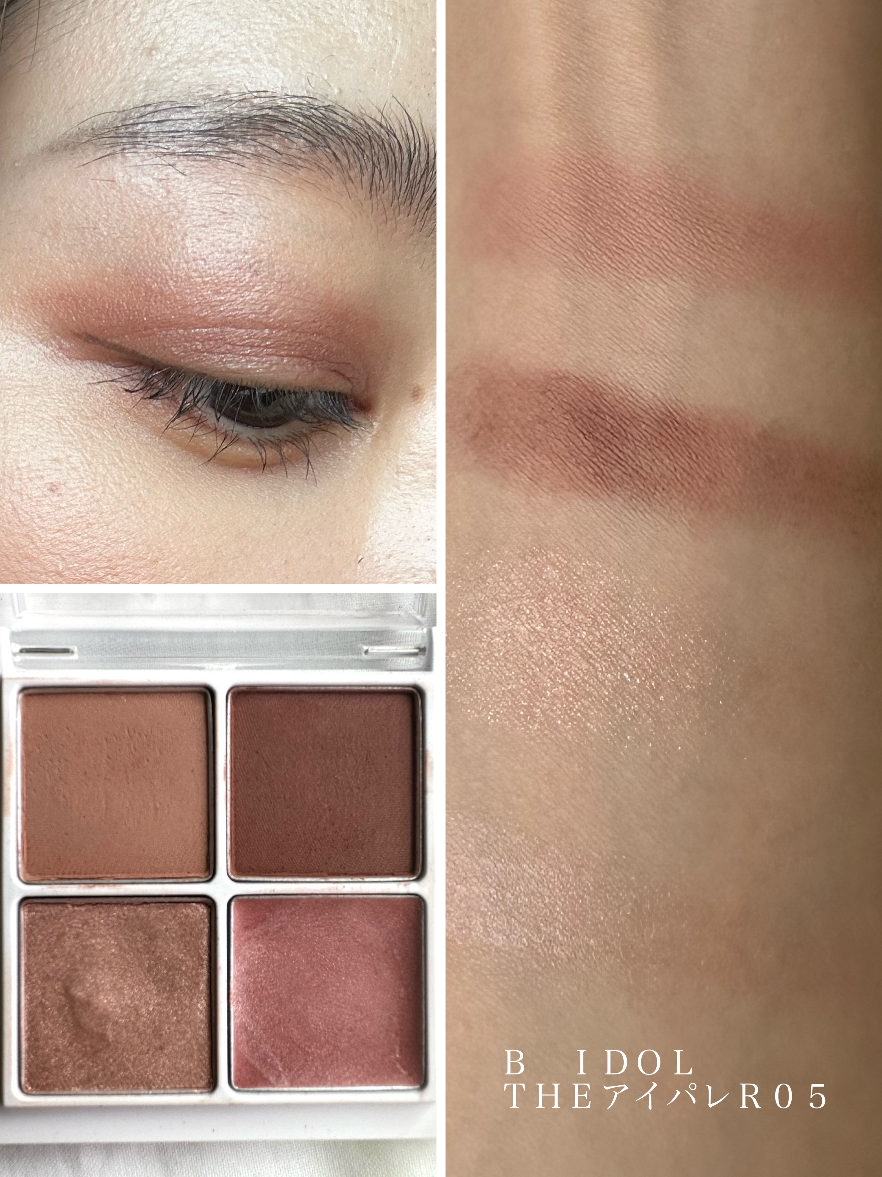 エクセルはカラーが可愛くてこの色は透明感や色気が出る色味💜上品に仕上げたい時によく使う◎ ビーアイドルはくすみカラーで目が大きく見えるのに可愛さも残す大人が欲しくなる色味分かってくれてるーう🩷 セザンヌはどんな色にも合わせやすくオンオフどちらも使いやすい◎この深い色とほのかな赤みが秋冬に映える色味🤎そして価格が安過ぎるのよ!