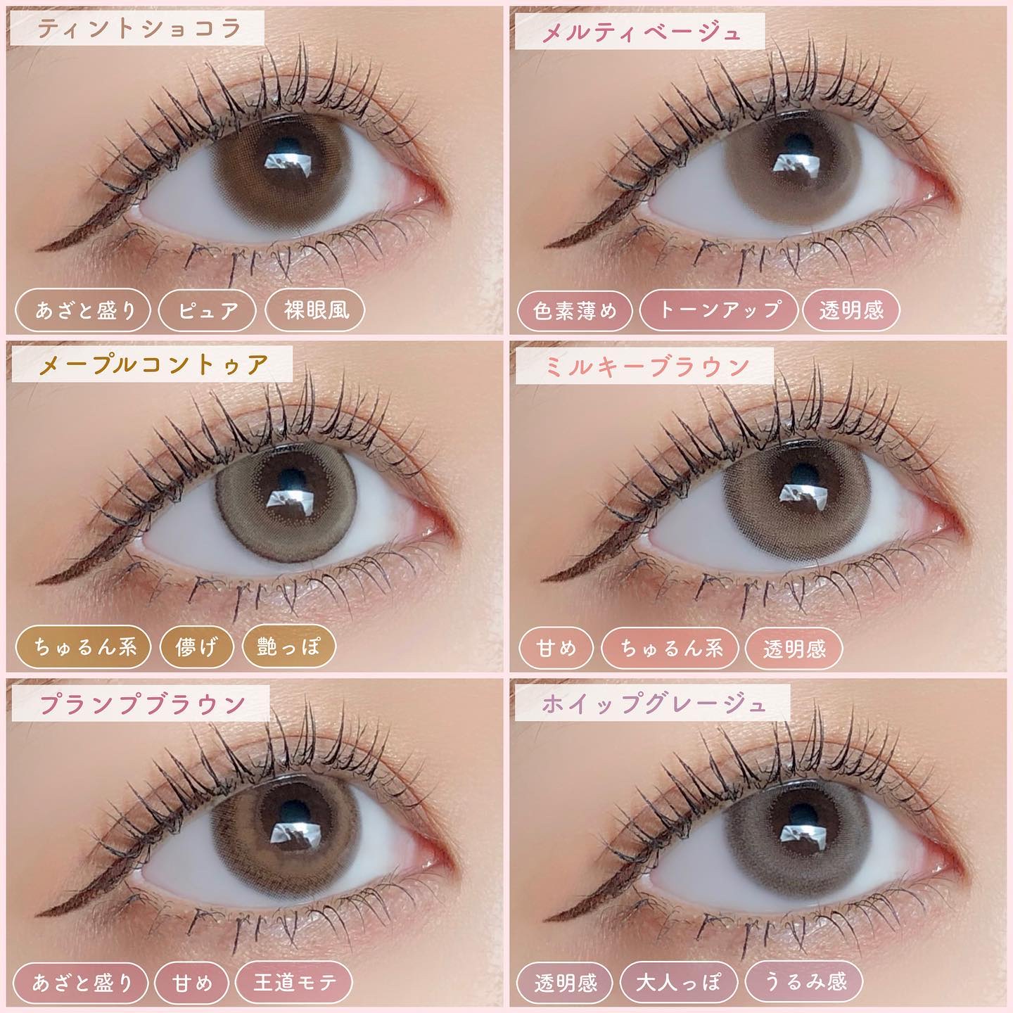 Flurry by colors#フルーリーB C : 8.6mm / 含水率 : 58.0%(D I A ・着色直径は各カラーに記載)ワンデー1箱10枚入 / 全10色 🐩 #くりくりプードル 🆕( DIA :15.0mm / 着色直径 : 14.4mm )【明日花キララちゃん2ndプロデュースレンズ】フルーリーでも特に人気のリングフチのブラウンver.!太め・濃いめのぼかしフチ✖️やや赤み寄りブラウン。うるうるな赤茶目の愛されプードルeyeに💓 🦭 #あざとあざらし 🆕( DIA :14.5mm / 着色直径 : 14.0mm )裸眼の色に馴染む透明感のあるシアーベージュ。ダークブラウンともチョコとも違うあざとくて上品な瞳に🤍