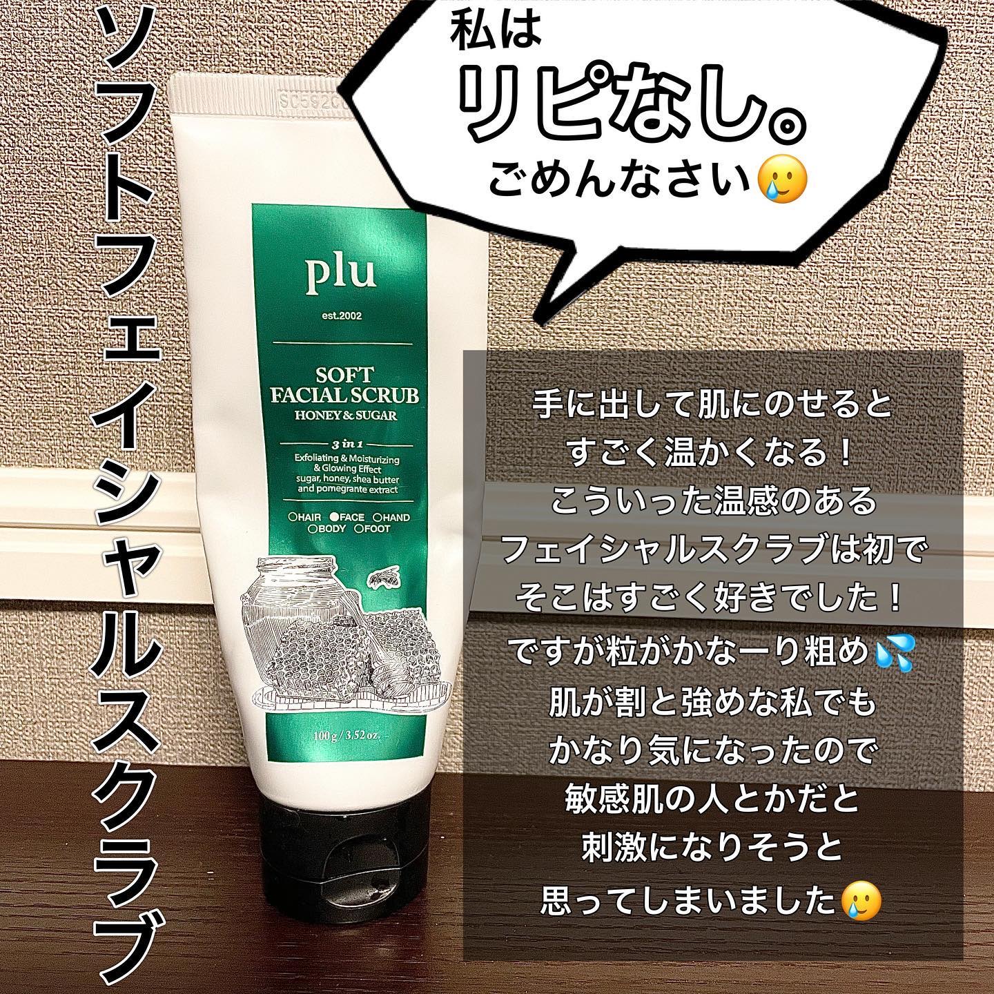 フェイシャル&ボディ2種類のスクラブplu(プル)様レビューイベントに当選しました🎁2種類のスクラブをお試しさせていただいたので紹介します☺️🧡plu(プル)ソフトフェイシャルスクラブハニー&シュガー内容量:100gおすすめポイント♡各種臨床...