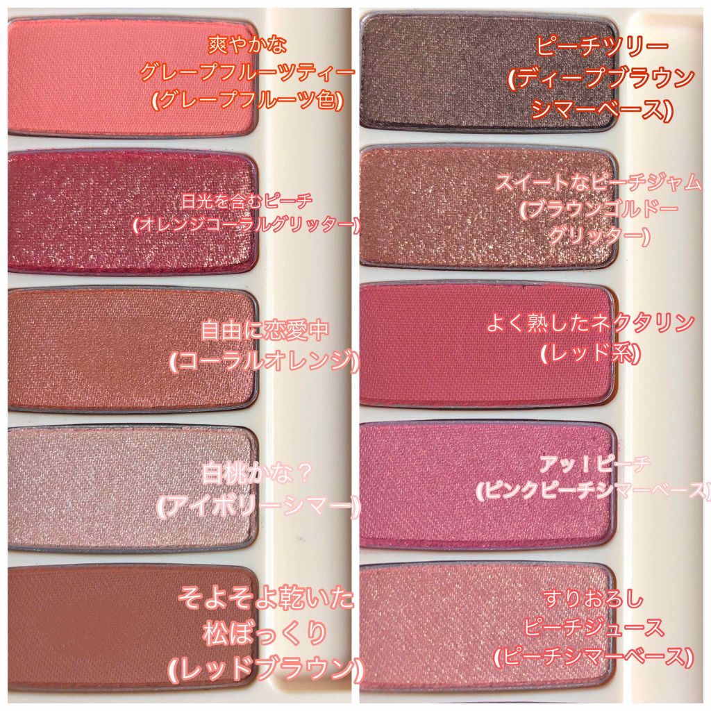 - 肌なじみの良い、鮮やかな発色で目元を華やかに彩る捨て色なしの10色アイシャドウパレット 異なる3種のテクスチャーを自由に組み合わせて、グラデーションも思いのままに。 NEW 2023.4 ・肌トーンにあう配色を詰め込んだトレンドカラー 肌トーンに合わせて、自分に似合うトレンドカラーが楽しめる♡ パーソナルカラー×トレンドカラーの掛け合わせパレットで、デイリーメイクもスペシャルメイクも気分にあわせてなりたい自分に! ・むにゅっとジェル質感ラメで高密着、煌めく目元 パレットの中でもポイントとなる大きめ粒子のラメは、ジェルのような新質感で落ちにくく肌にぴったりと密着します。キラキラとした目元をキープします。 ・使うカラーは大きめに!リアル捨て色なしパレット ベースやラメのよく使うカラーと締め色や濃い色等の減りが少ないカラーを異なるサイズで詰め込んだ、リアル捨て色なしパレット! <使用方法> 付属のデュアルシャドウブラシでベースカラーをまぶた全体に塗り広げます。細いブラシでグラデーションや目尻、アイライン、涙袋などのポイントカラーをのせて仕上げます。