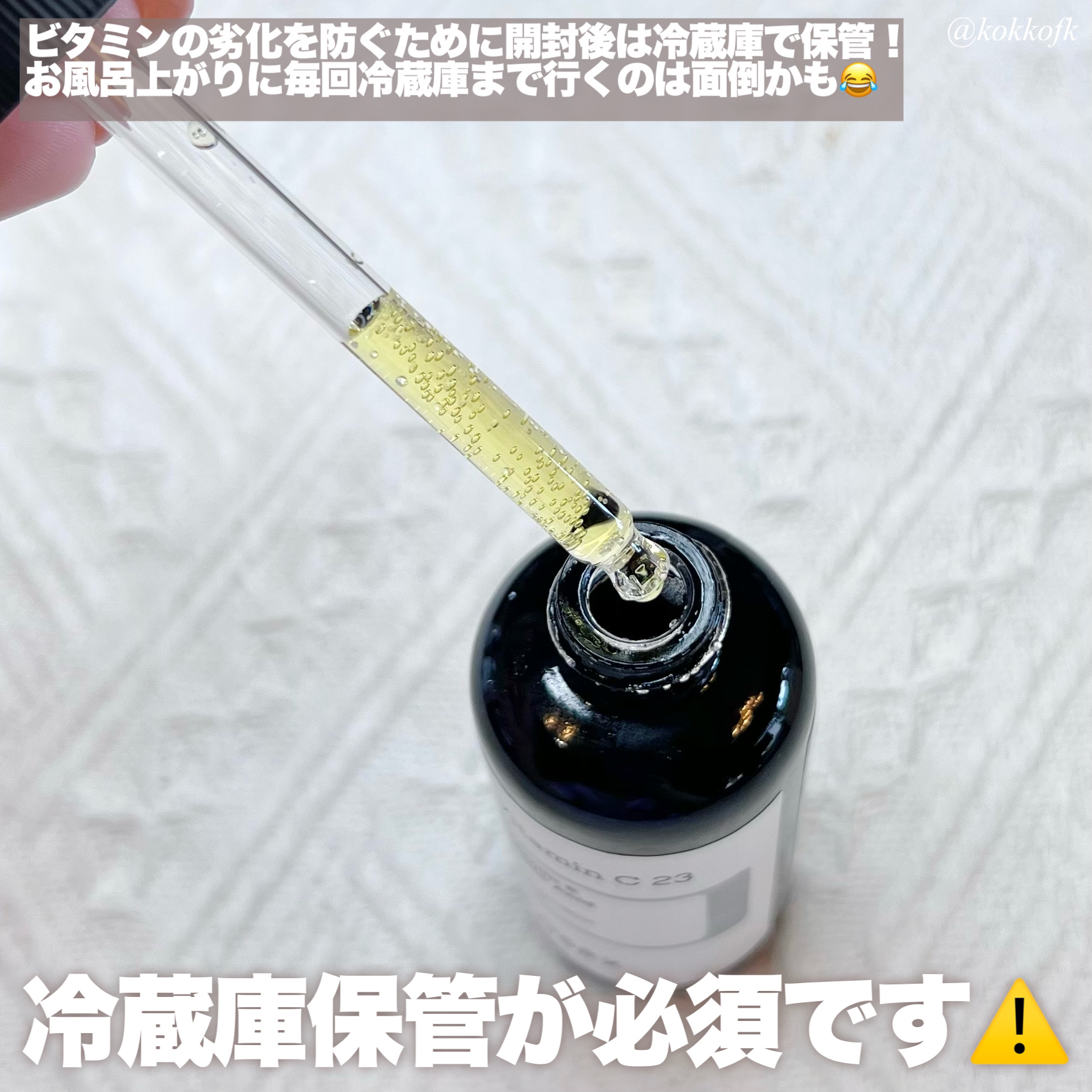 - #乾燥によるくすみケア #肌透明感 ◎日本にて2022年発売から10か月間で23万個販売突破 ◎ビタミンCなんと23%配合のセラムで乾燥によるくすみの保湿対策から透明感ケアまで! ◎保湿成分として、ヒアルロン酸/アラントインも配合されており・保湿ケアもしっかり! ◎乾燥や紫外線など外的ストレスに悩む肌にうるおい ・「敏感肌対象一次刺激テスト」済み* ・「皮膚ー次刺激テスト」済み* 【こんな方におすすめ】 ・乾燥によるくすみがお悩みの方 ・ビタミン保湿ケアを試してみたい方 ・肌ケアをしっかり行いたい方 ・透明感あふれる肌を演出したい方 【注意事項】 ・購買後すぐにご使用していただき、縦で冷蔵保管(3-10℃)してください。 ・ビタミンC製品は酸化により変色しやす いため開封後、2か月以内のご使用をお 勧めします。 ・本製品を昼間に使用する場合は必ず日焼け止めを塗ってください。 ・香料を配合していないため原料固有の香りが感じられる可能性がございます。 * )すべての方にアレルギーや皮ふ刺激がおきないわけではありません。