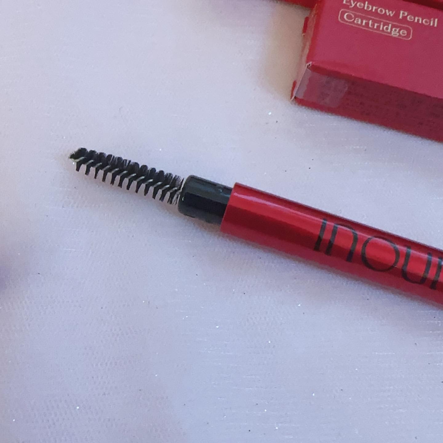 初めましてこんばんは。私もインウイのアイブロウペンシル愛用しています。以前の先代インウイのアイブロウペンシルより若干芯が細くなりましたが、描きやすい上朝から帰宅時まで長持ちしてくれ、ウォータープルーフなのに描きやすいところもお気に入りです。レフィルも以前のような差し込み式の替え芯でなくマキアージュと同じカートリッジタイプの替え芯になり、BCさんの話によれば2ヶ月くらい持つとの事でありました。