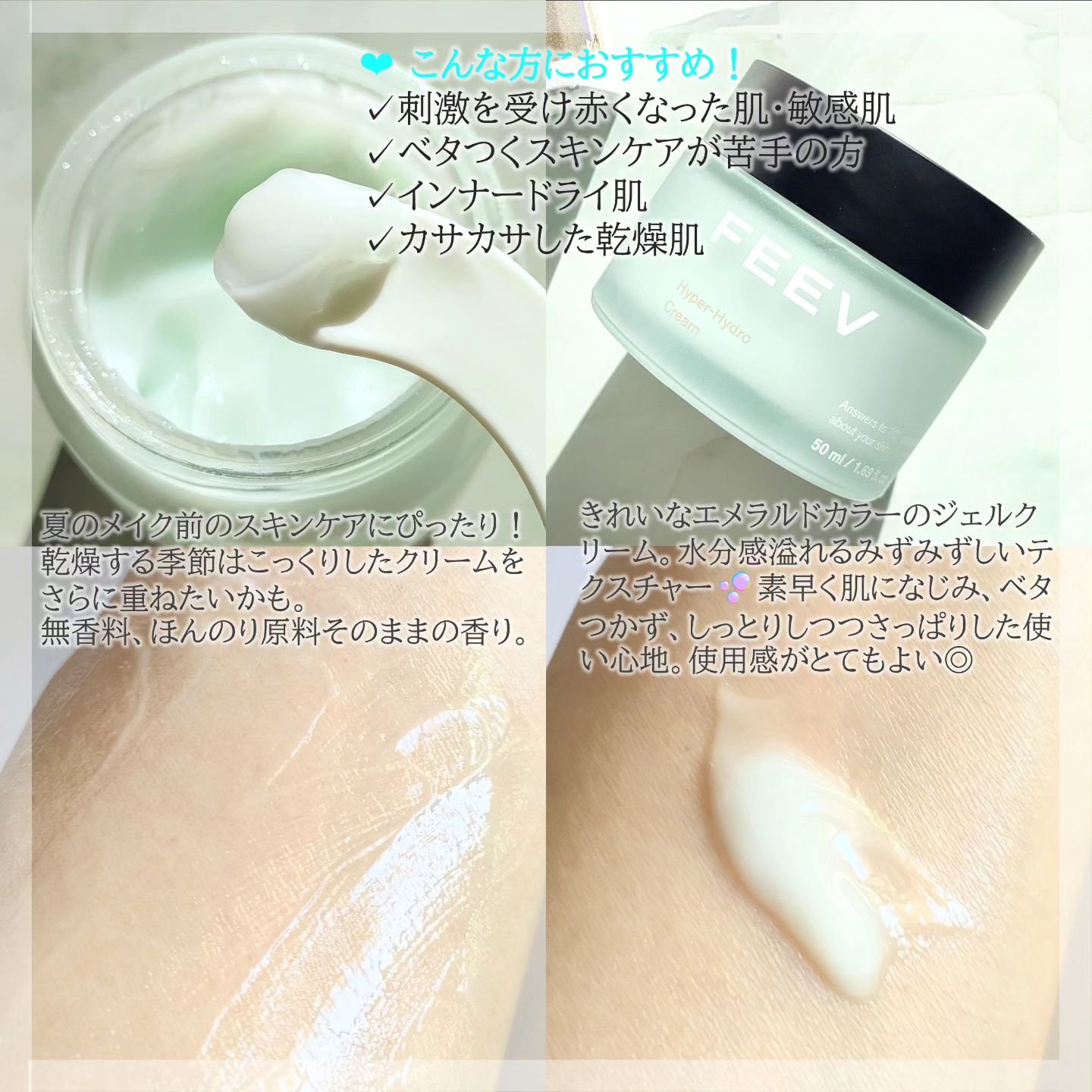 【feevで火照った肌をクールダウン🧊】feevのイベントで当選しギフティング頂きました!#feev[ハイパーハイドロセラム]とろみのあるテクスチャで、馴染ませきると、ベタつかずサラッとした仕上がりになる![ハイパーハイドロクリーム]クリーム...
