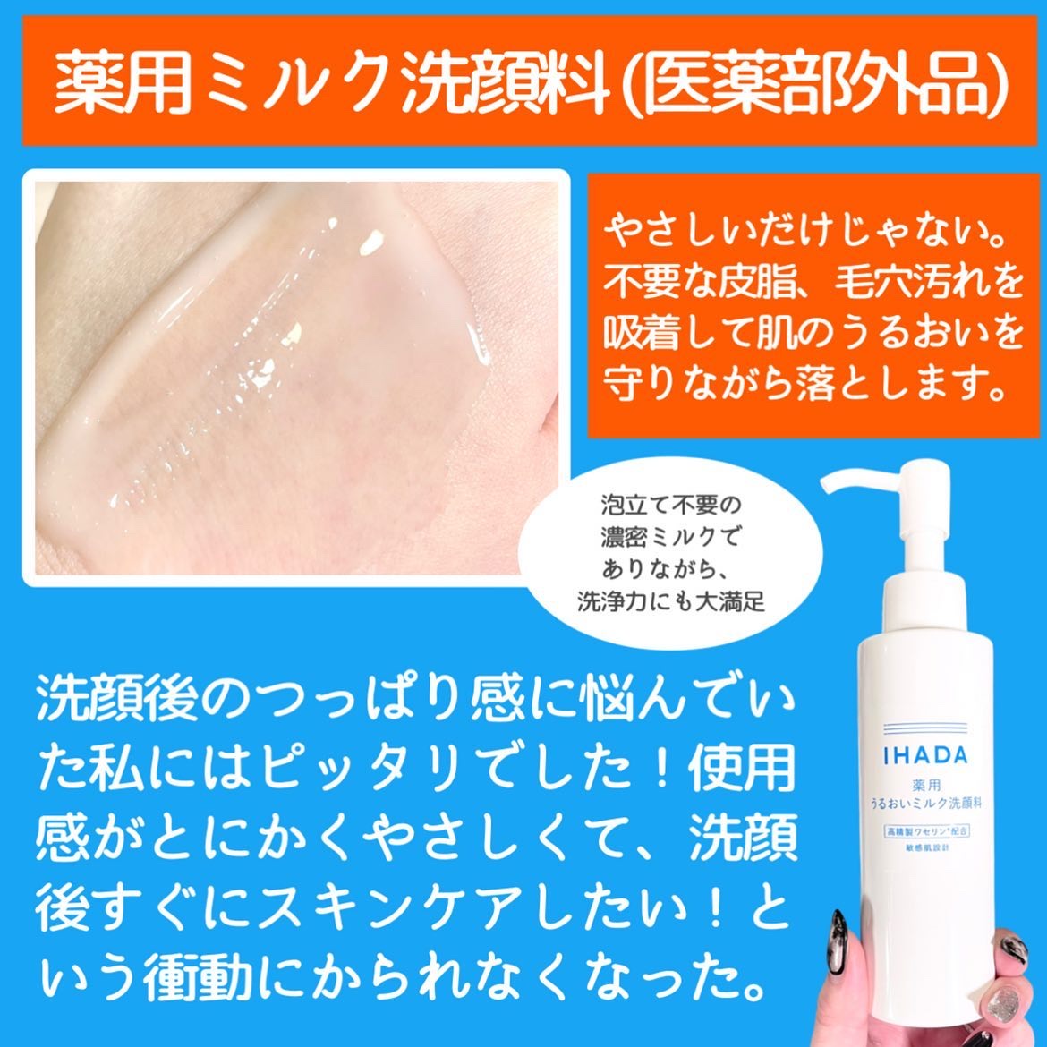 \春のゆらぎ肌にもIHADA/高精製ワセリン(肌うるおいバリア保護成分)を配合した、イハダのスキンケア。日々の寒暖差が激しく、湿度が低い今の時期だからこそ使いたいアイテム揃いです。◎イハダ薬用うるおいミルク洗顔料〈医薬部外品〉140mL1,7...