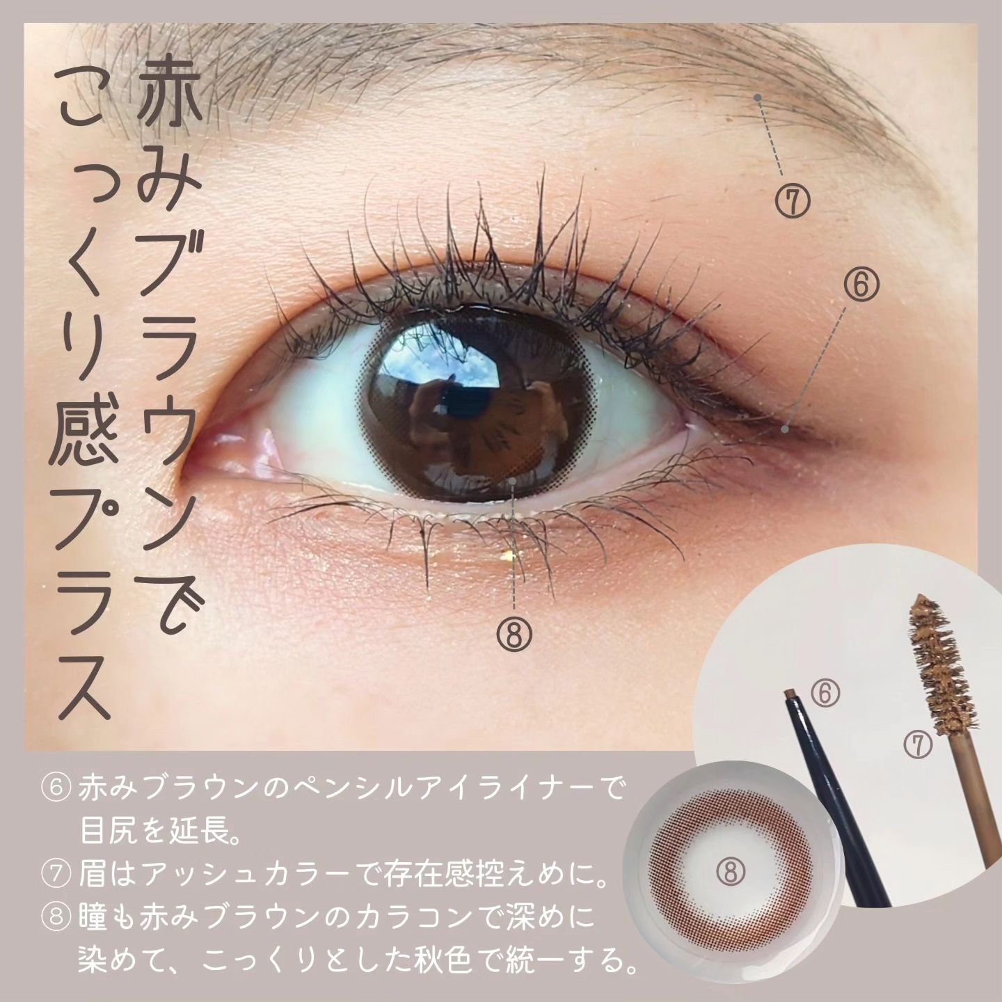 締め色ブラウンでこっくり深めに ネイルに合わせていつもよりダークトーンの範囲を増やし、赤みブラウンを取り入れることで、指先との統一感を🍷✨ リップもブラウン系で💄♡