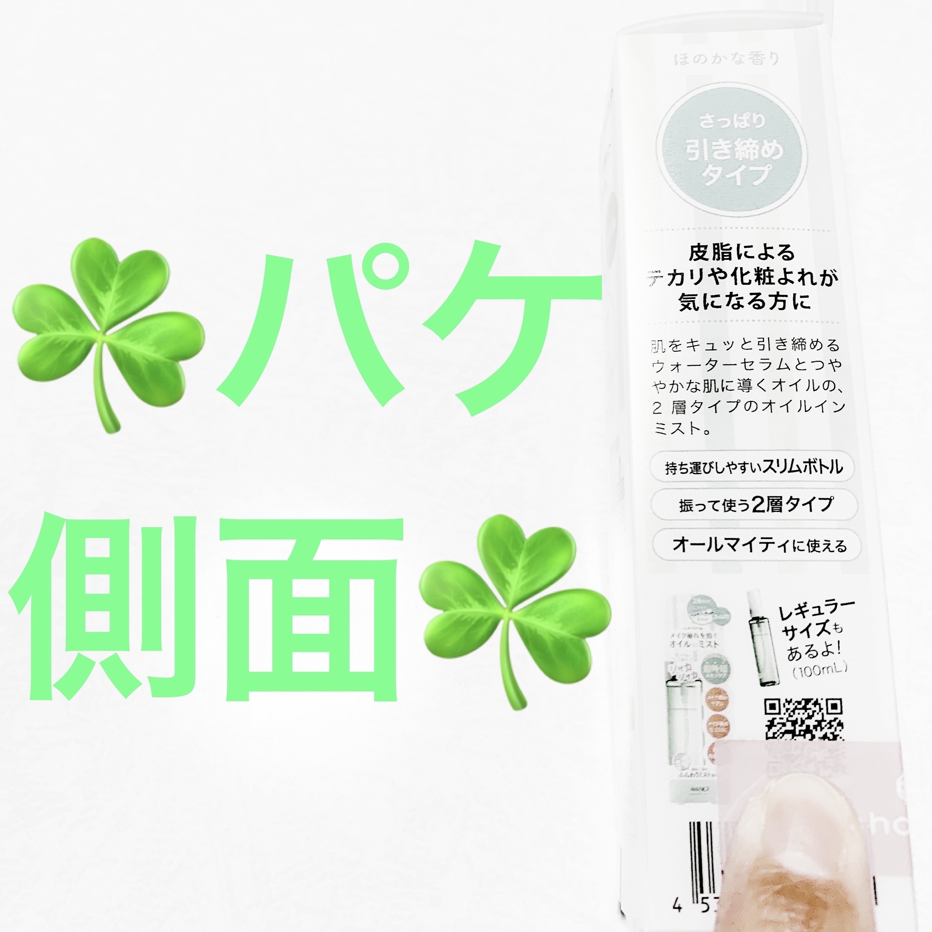 - シャカシャカ振って3プッシュ! いつでもどこでも超時短スキンケア! ●メイク崩れを防ぐオイルインミストです。 ●メイクのノリ & モチが劇的にUP!! ●うるおいロングキープ! 乾燥による過剰な皮脂の分泌を抑えます。 ●細かい霧のふんわりミストタイプ。