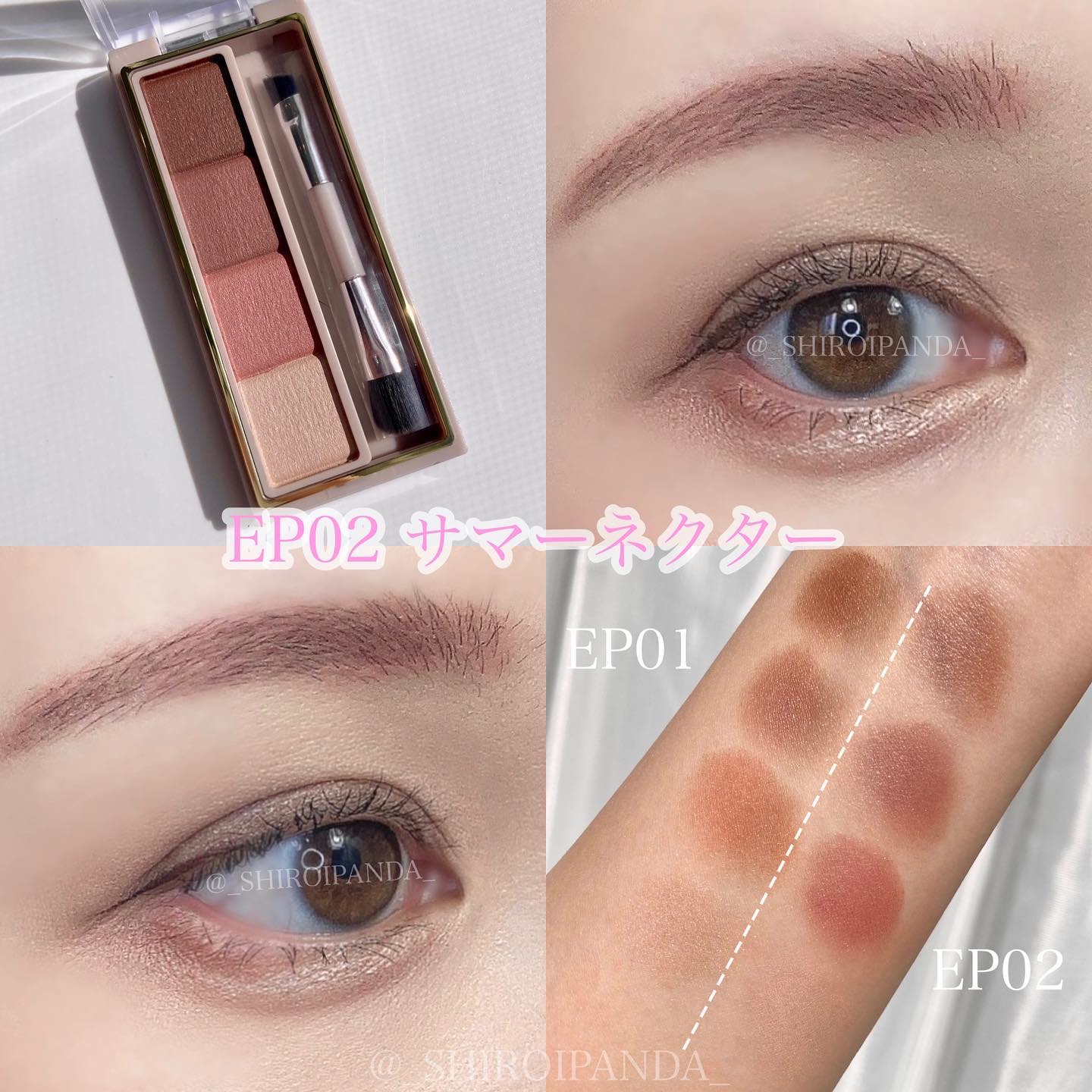 - <EP01 スプリングモカ><EP02 サマーネクター> <EP03 オータムベージュ><EP04 ウィンターモーヴ> タルク、ジメチコン、合成フルオロフロゴパイト、シリカ、リンゴ酸ジイソステアリル、合成モクロウ、パンテノール、スクワラン、トコフェロール、フェノキシエタノール、グンジョウ、ステアリン酸Mg、マイカ、酸化チタン、酸化鉄、水酸化Al