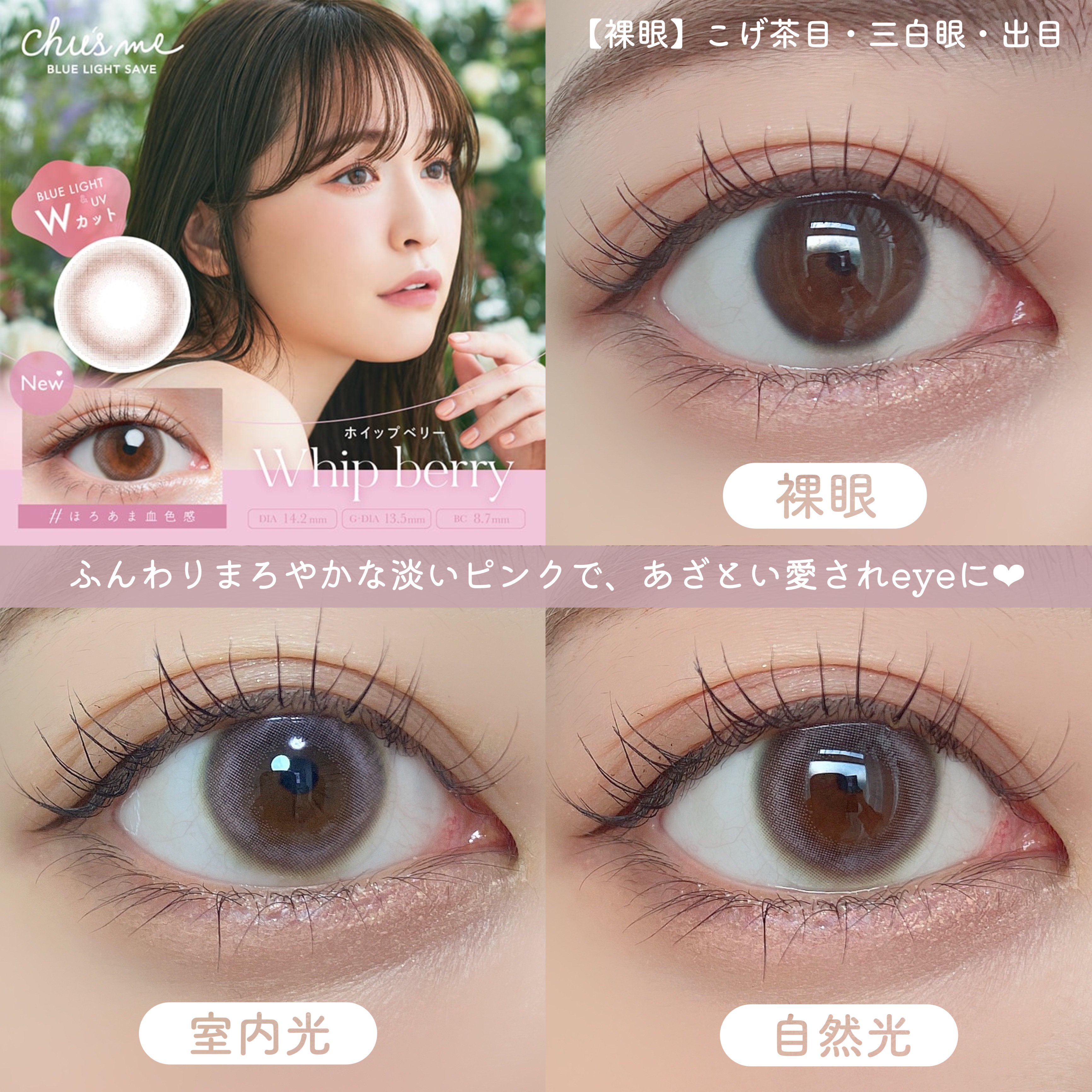 ☆Chu'sme☆BLUELIGHTSAVE1dayDIA14.2mm/BC8.7mm/含水率55%お色はホイップベリーとってもナチュラル系✨️ピンクとパープルの間?くらいの色味でほわっと発色✨️『正にホイップベリー』BC8.7mmで高含水の...