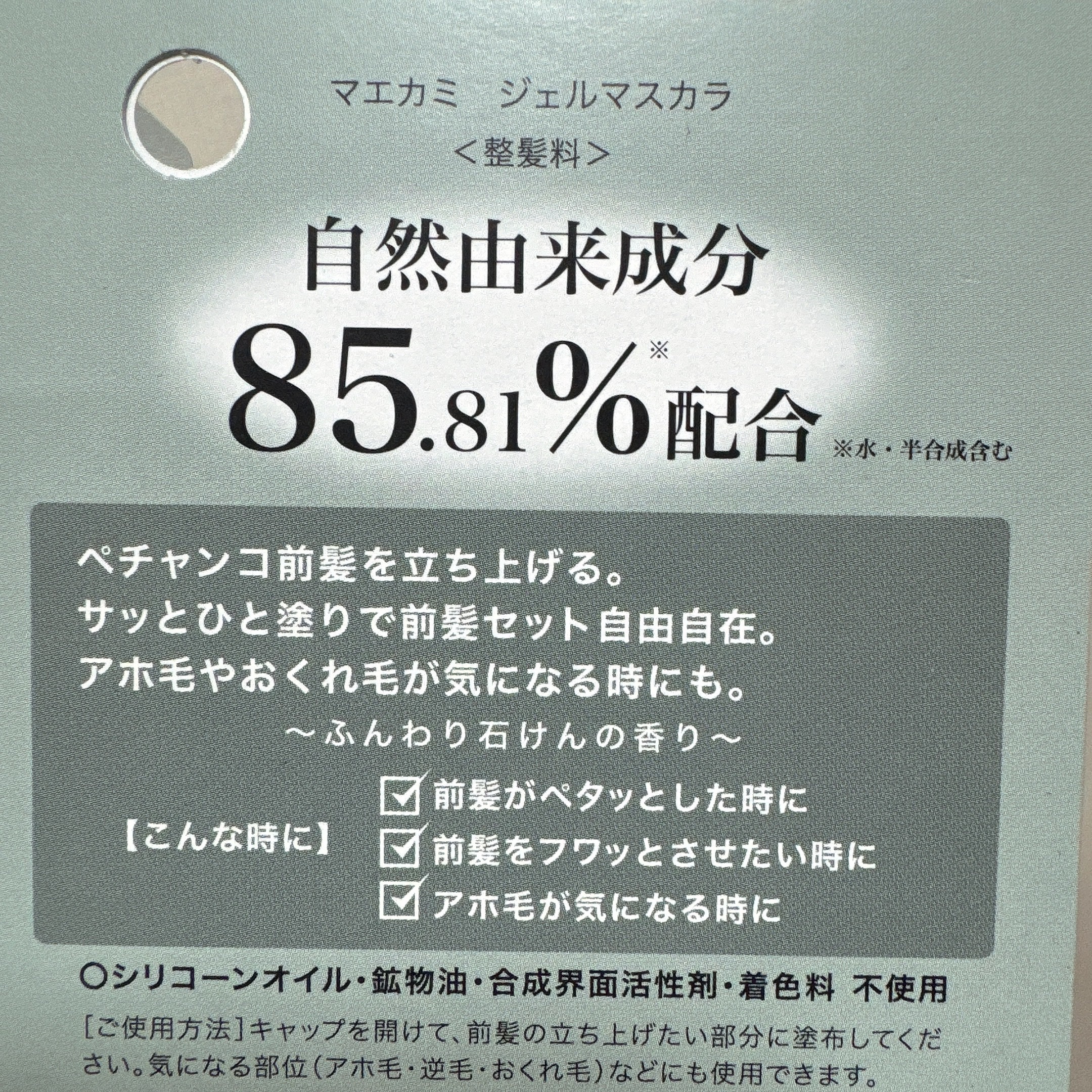 - 前髪スタイル自由自在 かきあげ前髪をキープするジェルタイプのマスカラ