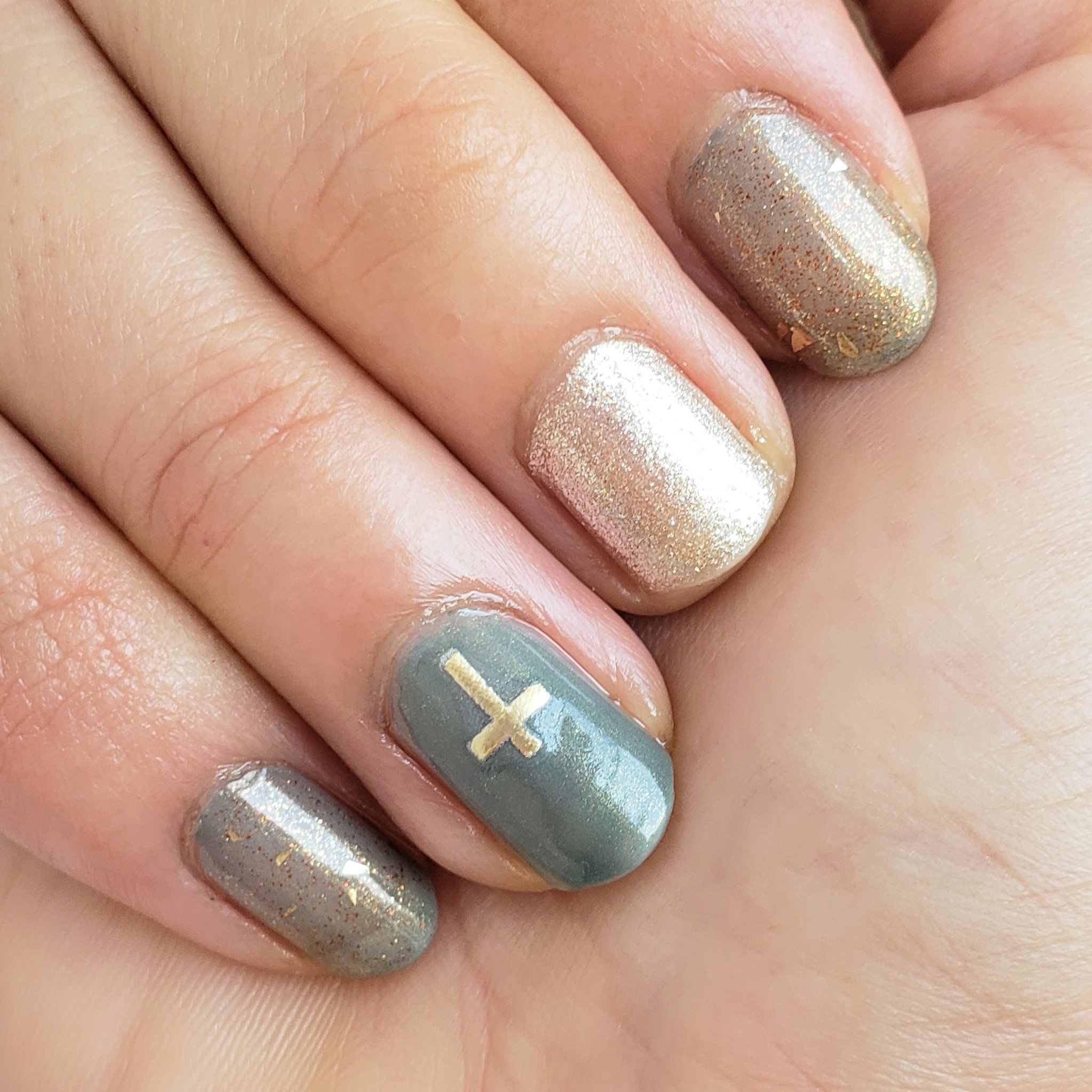 ポイントとしては、ガラスフレンチ部分は一息でやること…かな。 手順でいうと②~④だね。ベースにしたローズミルクティーが乾いたら、フレンチラインをひくところからメタルホロを貼り付けるところまでサッサッサッと💨 下準備として、メタルホロはちょうどいい大きさに切っておくと作業がスムーズ◎ それから、メタルホロを使うときは下にティッシュかキッチンペーパーを敷いておくと片付けもラク◎ 指一本ずつの作業だから、ネイルにかかる時間がかなり長くなるけど、やっぱりガラスフレンチは可愛い🖤