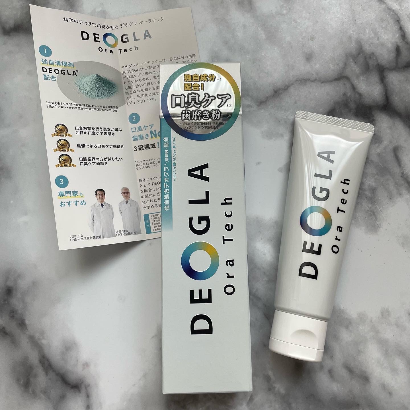 デオグラオーラテックは老舗の硝子メーカーが開発した歯磨き粉なんだよ‼️硝子メーカーなのが意外過ぎるよね🤗 口臭にアプローチしてくれる独自成分「DEOGLA」(清掃剤ホウケイ酸(AI/Ca/銅/Na))が配合されてるよ🎵 キレイなグリーンのペースト✨レモングラス香味だよ🤗あまりミントがキツイのは苦手だから、すごく使いやすい💓